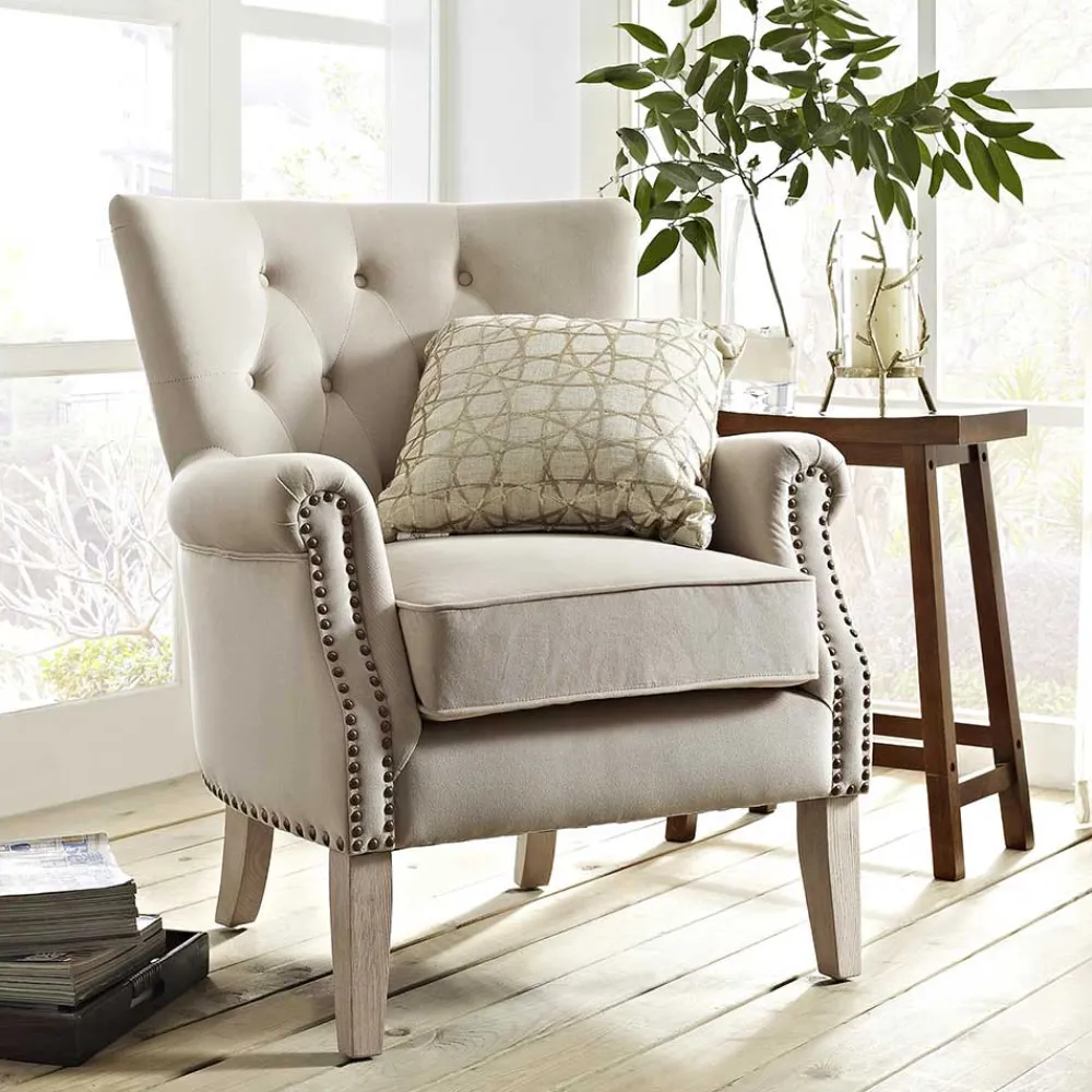 - Formschöne Armlehnen mit dekorativer Nietenverzierung