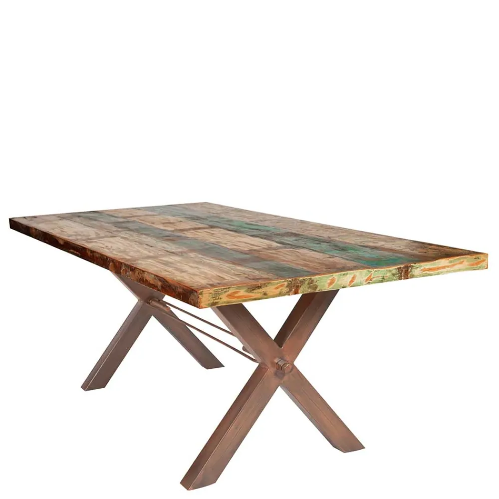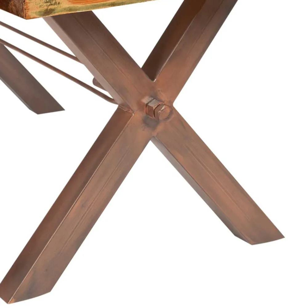 Sheesham Holz steht nicht nur für seine Robustheit und den Widerstand gegen Abnutzung, sondern auch für seine Umweltfreundlichkeit, da es aus nachhaltigen Quellen stammt. Die Kombination mit einem X-Fußgestell aus antikem, braunem Eisen fügt eine zusätzliche Dimension der Stärke und des industriellen Charmes hinzu. Die einstellbare Weite des Tisches durch ein innovatives Gewindesystem im Gestell sorgt zudem für Flexibilität in jedem Essbereich, ganz gleich ob Sie mehr Gäste erwarten oder einfach mehr Raum benötigen.