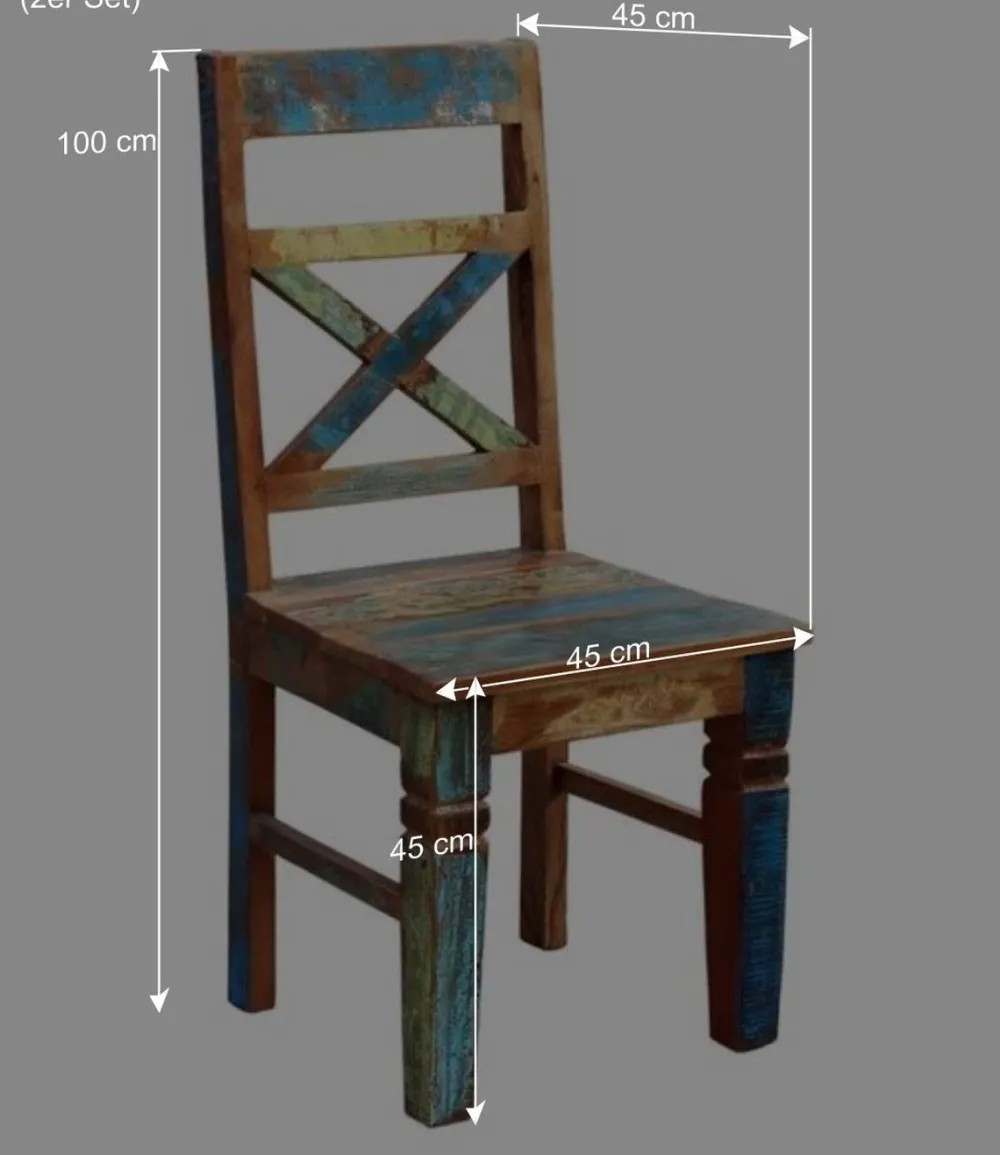 Die Oberfläche unserer „Jamaica“ Stühle ist kunstvoll in verschiedenen Farbtönen lackiert, wodurch ein lebendiges und dynamisches Erscheinungsbild entsteht. Farbreste auf dem Holz sorgen für zusätzlichen Charme und erinnern an die Vergangenheit des Materials. Die Lackierung schützt das Holz zudem vor äußeren Einflüssen und sorgt für Langlebigkeit und einfache Pflege.