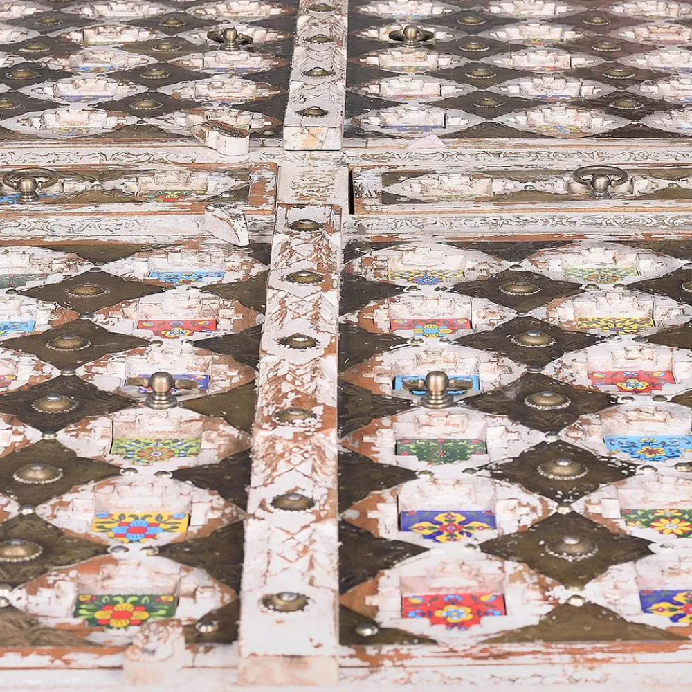 Gefertigt aus massivem Mangoholz, punktet dieser Wohnzimmerschrank nicht nur mit seinem authentischen Look, sondern auch mit robuster Qualität. Die Holzoberflächen sind mit einem eleganten White-Wash-Effekt veredelt, der den rustikalen Charakter gekonnt unterstreicht. Liebevolle Details wie bronzefarbene Ringgriffe und Metallscharniere verleihen dem Möbelstück ein harmonisches Gesamtbild. Dank der Handfertigung ist jedes Exemplar ein einzigartiges Unikat mit individuellen Farb- und Strukturmerkmalen.