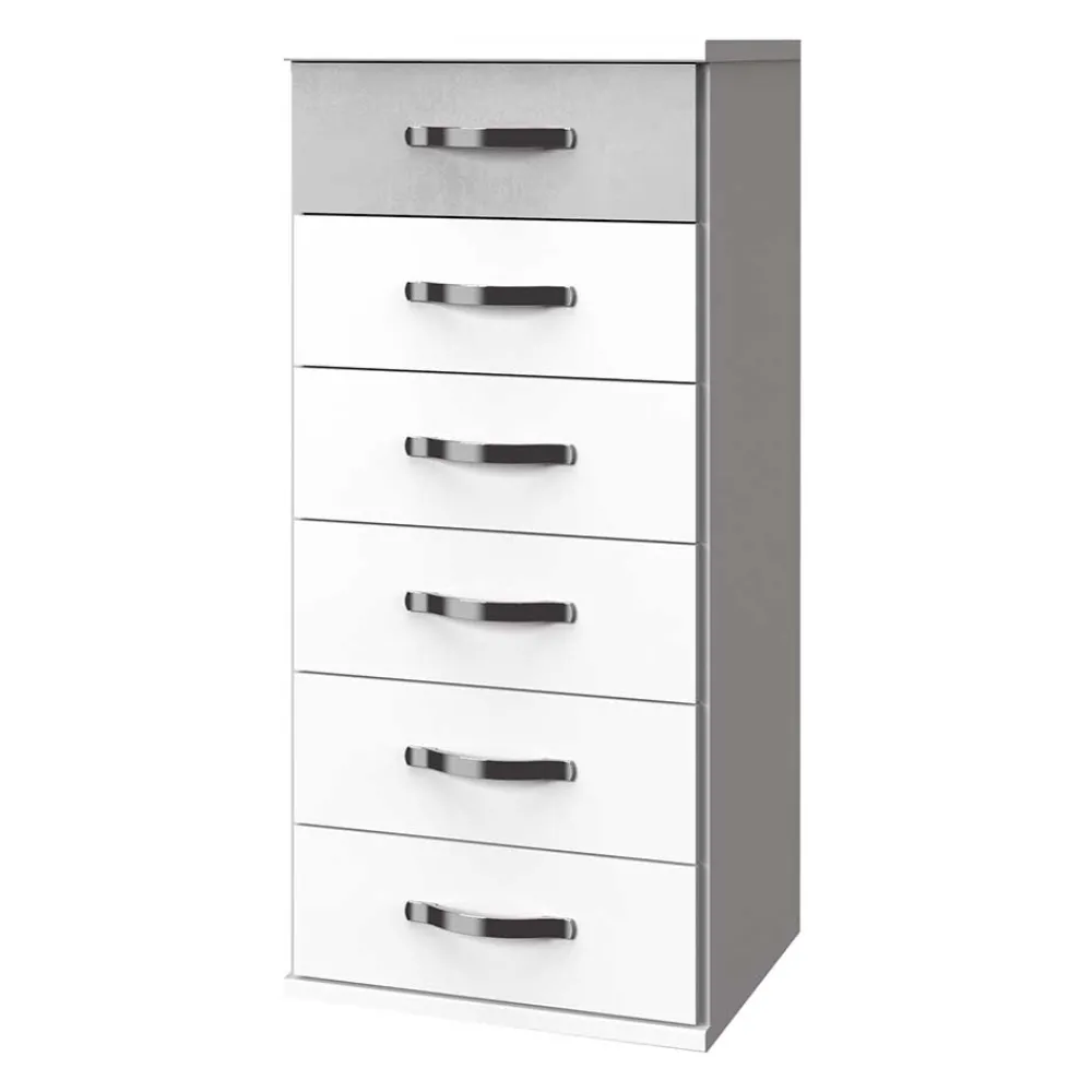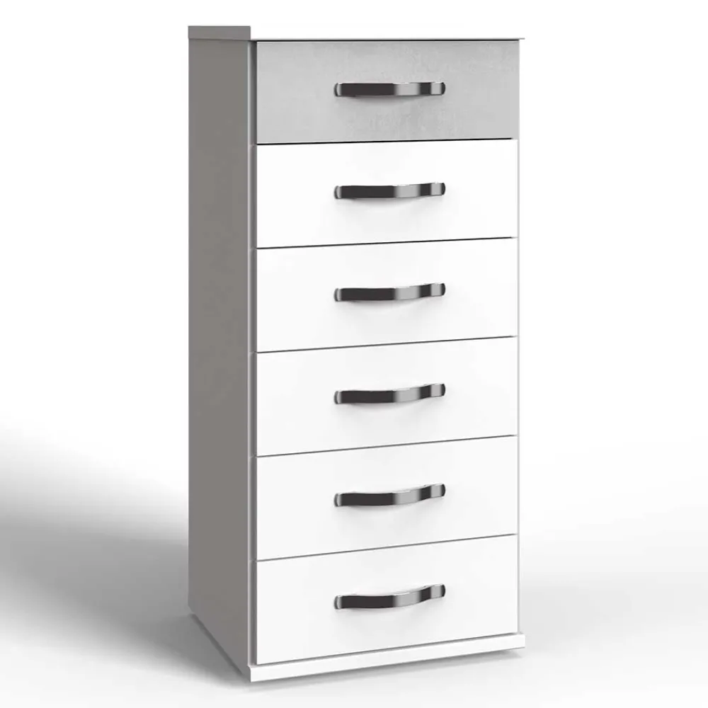 Mit ihren kompakten Maßen von 46 cm Breite, 106 cm Höhe und 40 cm Tiefe bietet die Hochkommode „Hotti“ jede Menge Stauraum. Die sechs Schubladen mit praktischen Metallauszügen ermöglichen eine übersichtliche Einteilung Ihrer Habseligkeiten. Ob Kleidung, Accessoires oder Haushaltsgegenstände – alles findet seinen Platz und ist jederzeit griffbereit.