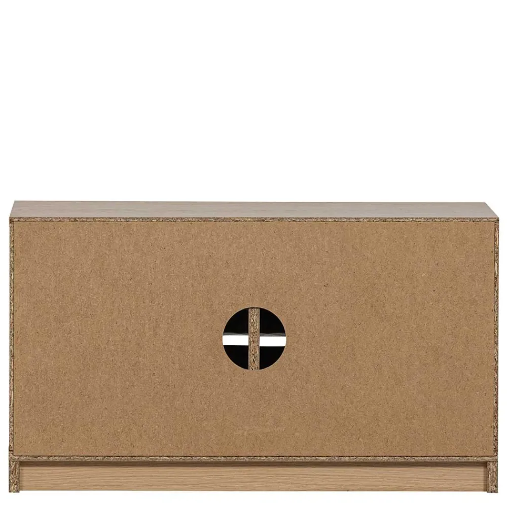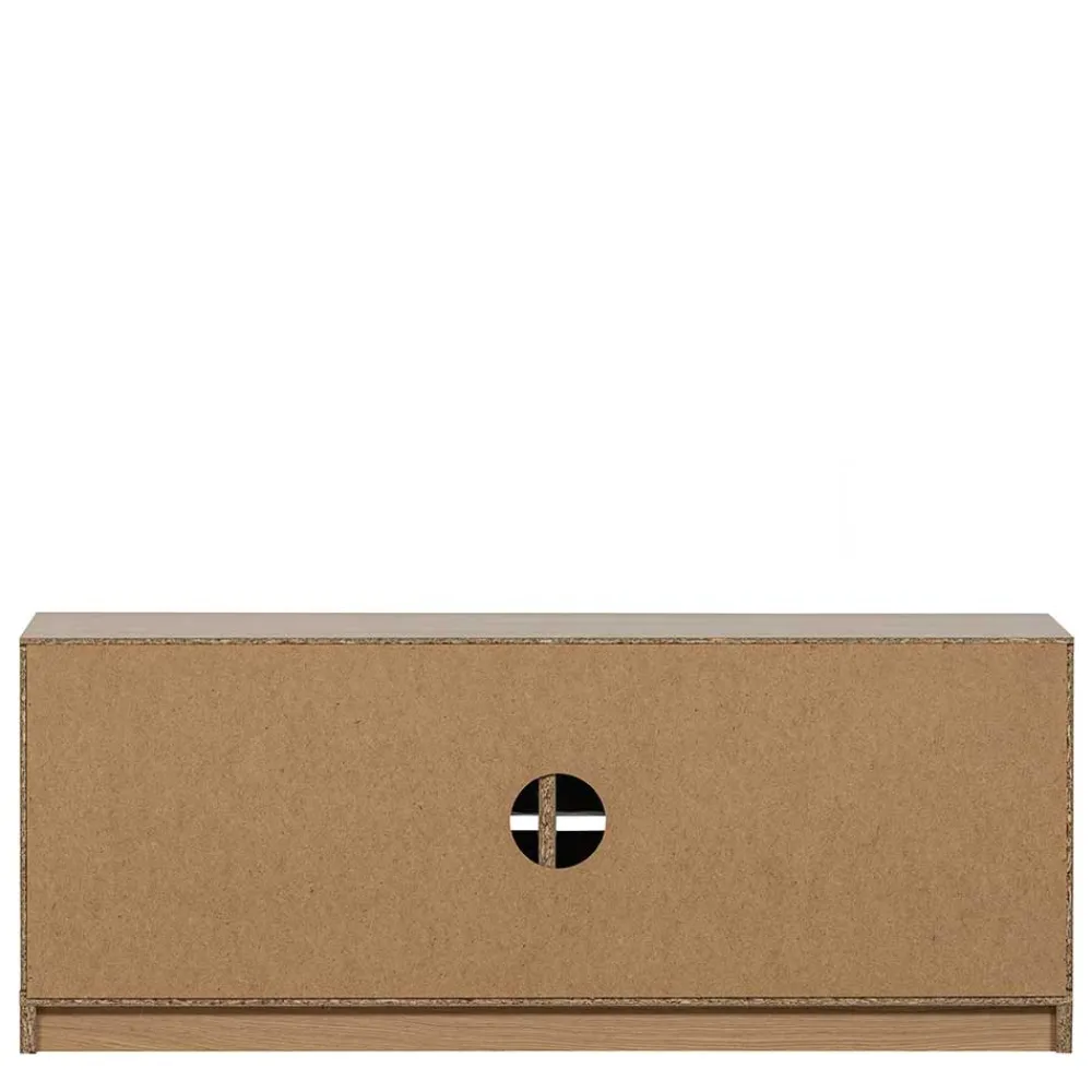Der Korpus besteht aus robuster Spanplatte – ein Material, das für seine hohe Formstabilität, Umweltfreundlichkeit und Wirtschaftlichkeit geschätzt wird. Dank der Materialstärke von ca. 17 mm überzeugt das TV-Board mit einer belastbaren und soliden Bauweise. Die Rückwand besteht aus HDF und ist ebenfalls hochwertig verarbeitet, inklusive einer großzügigen Öffnung für Kabelführung – für ein aufgeräumtes Technik-Erlebnis ohne Kabelsalat.