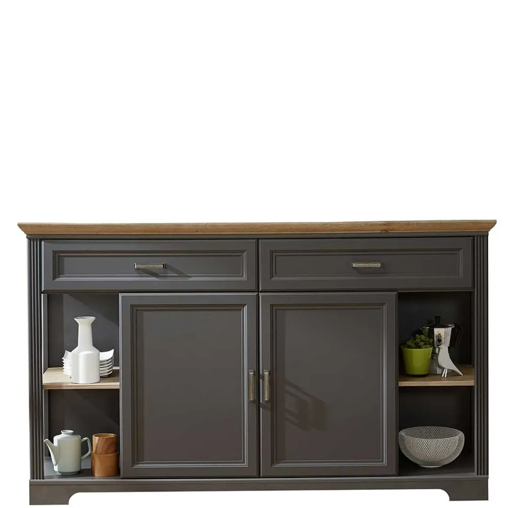 - Stilvolles Sideboard in Dunkelgrau und Eichefarben