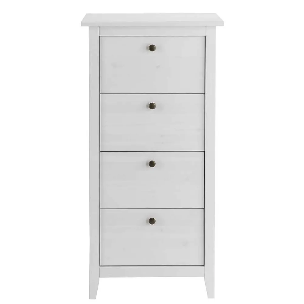 Vier Schubladen bieten nicht nur ausreichend Stauraum, sondern überzeugen auch durch ihre Funktionalität: Die Metallauszüge garantieren ein sanftes und gleichzeitig stabiles Öffnen und Schließen. Mit Innenmaßen von jeweils ca. 38x12x27,5 cm sind die Schubladen ideal dimensioniert. Die runden Metallknopfgriffe in Antik Bronzefarben vollenden das Design der Schubladen und erleichtern das Handling.