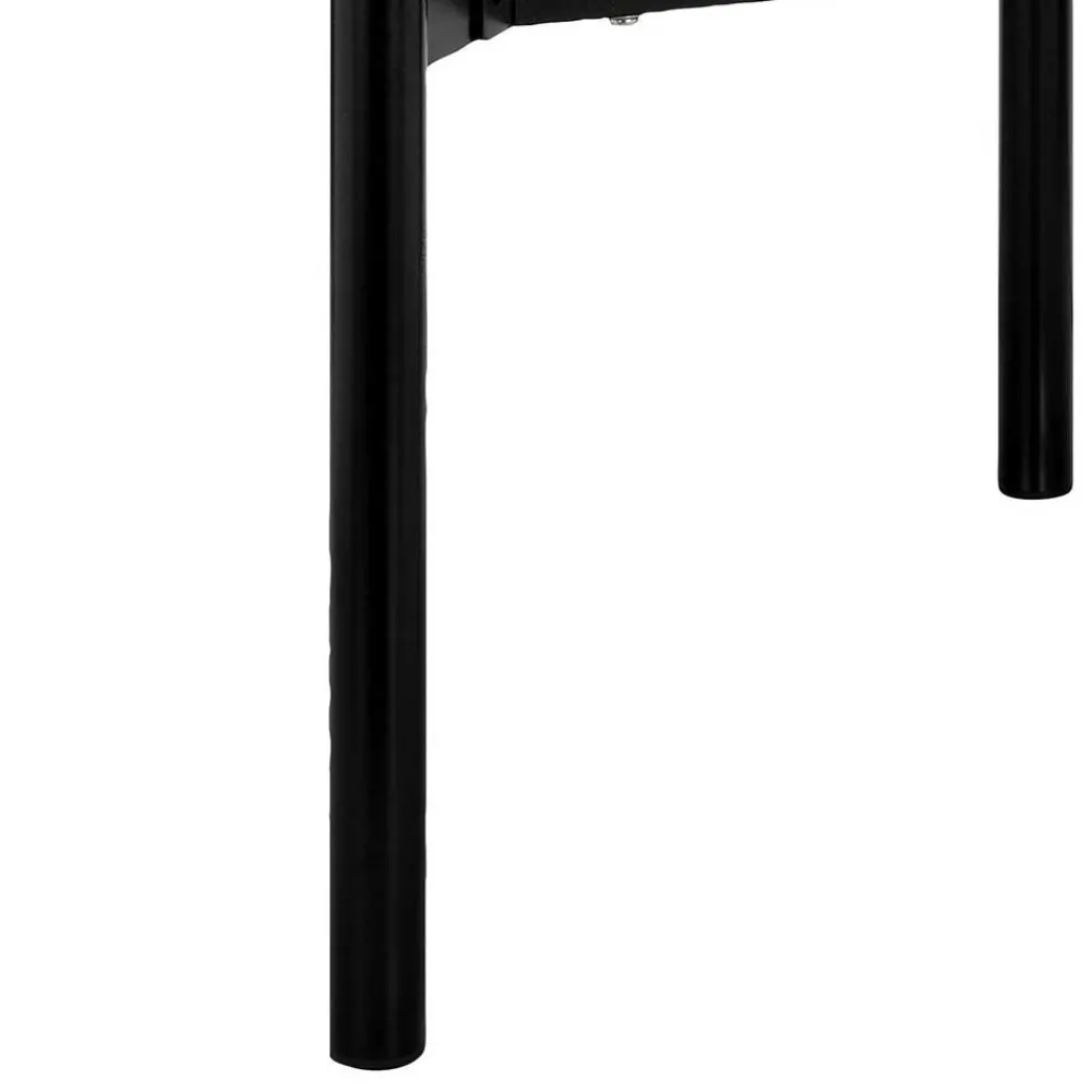 - Mattschwarz pulverbeschichtetes Metallgestell mit hochgezogenen Enden
