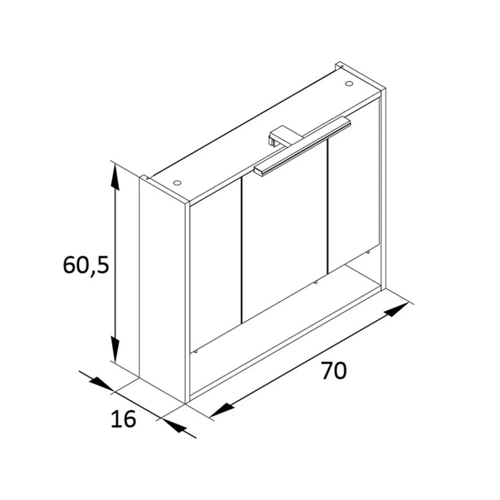 - Spiegelschrank (70x64x16 cm): Dieser Spiegelschrank ist mehr als nur ein Spiegel – er ist ein echtes Raumwunder! Mit drei Türen, die dank der Anschlagdämpfung sanft schließen, drei Glasböden für flexible Ablageflächen und einer innenliegenden Steckdose sind alle wichtigen Dinge sicher und praktisch verstaut. Das offene Fach bietet schnellen Zugriff auf die wichtigsten Pflegeprodukte. Die hochwertige LED-Aufsatzleuchte (Breite: 30,8 cm) sorgt für eine klare und angenehme Beleuchtung, die jeden Morgen perfekt starten lässt.