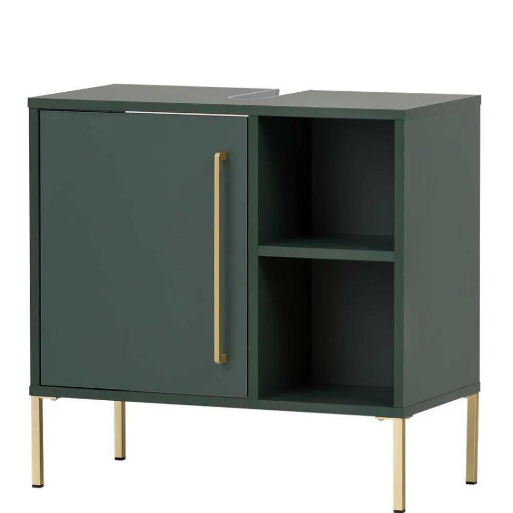 - Elegante Badmöbel in Dunkelgrün und Goldfarben