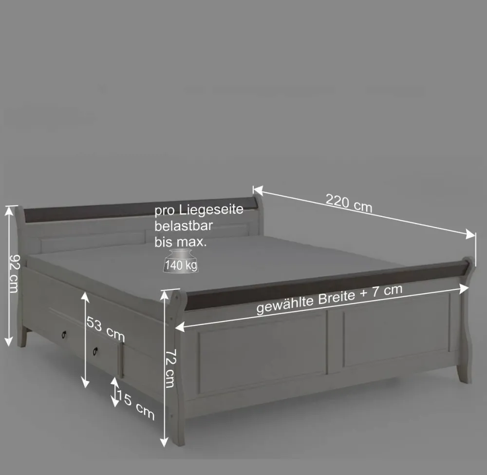 - Maximale Belastbarkeit Einzelbett, sowie pro Liegeseite Doppelbett: 145 kg