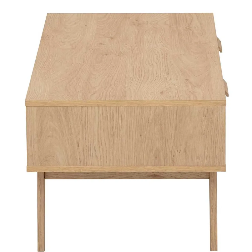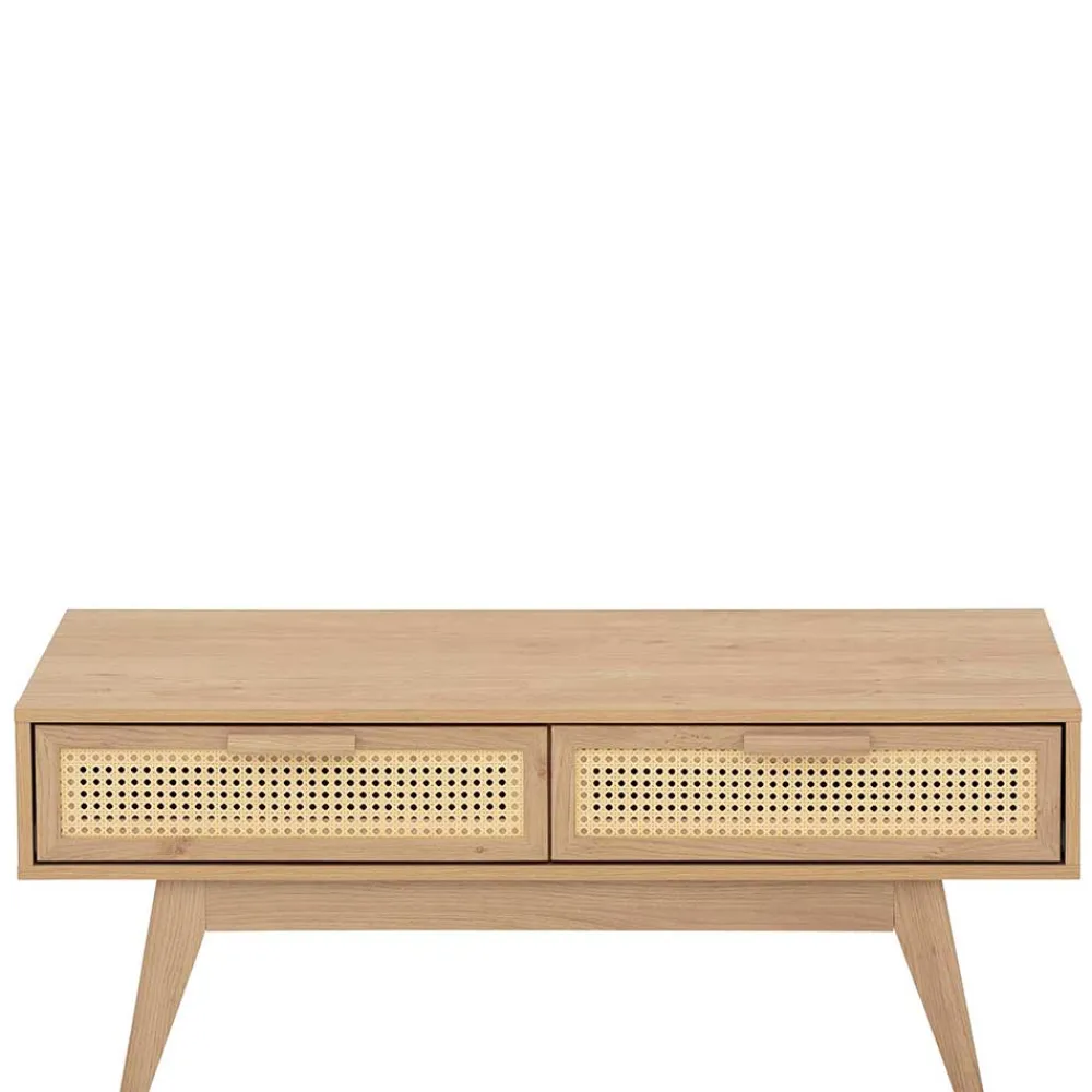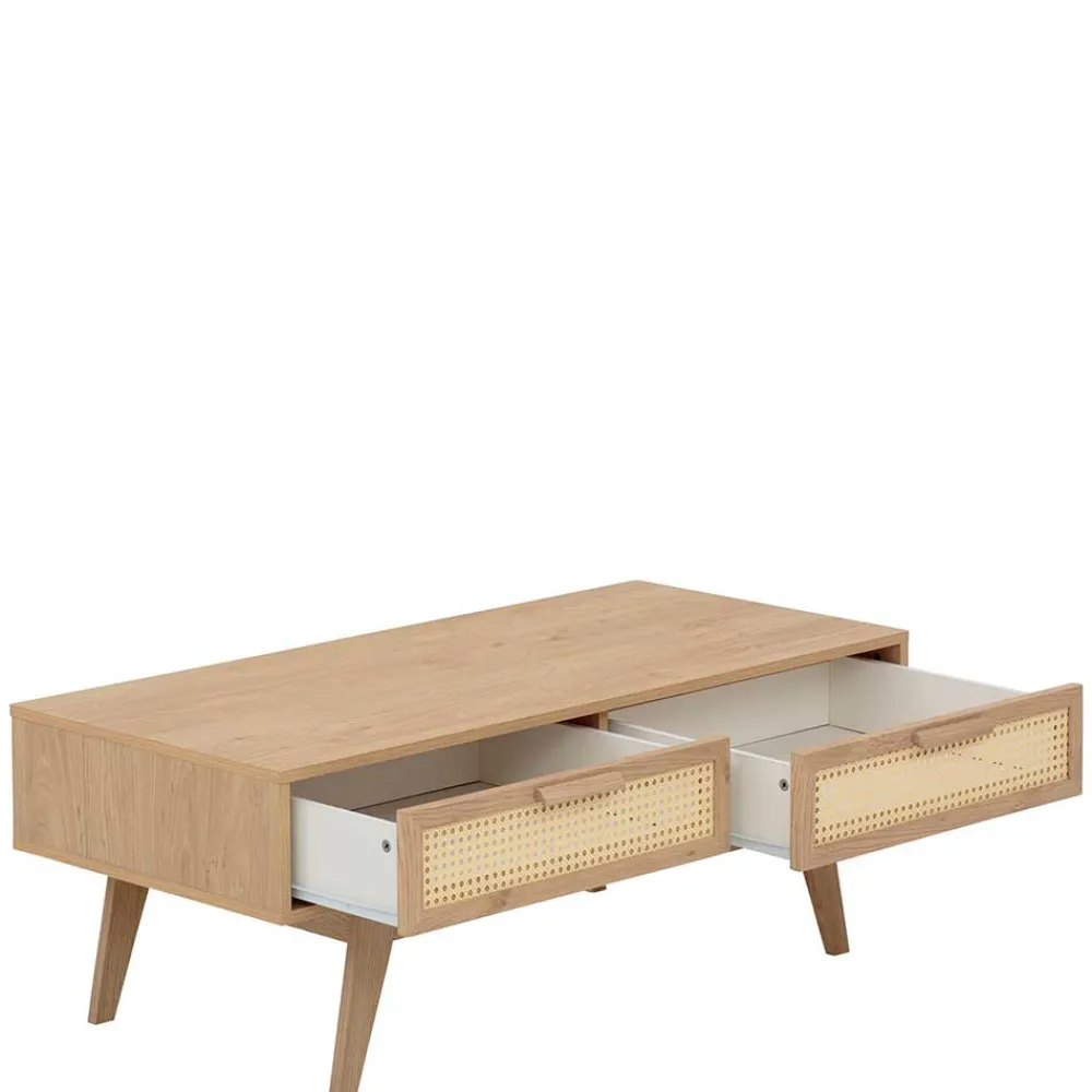 Der Wohnzimmertisch „Oraina“ bietet Ihnen neben seinem ansprechenden Design auch funktionalen Mehrwert. Die zwei Schubladen mit Metallauszügen bieten praktischen Stauraum für Fernbedienungen, Zeitschriften oder andere Kleinigkeiten, die Sie gerne griffbereit haben möchten. Die dekorativen Griffleisten aus Holz runden das Design ab und tragen zum skandinavischen Flair bei. Mit einer maximalen Belastbarkeit der Tischplatte von bis zu 50 kg ist der „Oraina“ nicht nur ein schöner Hingucker, sondern auch äußerst belastbar und robust.