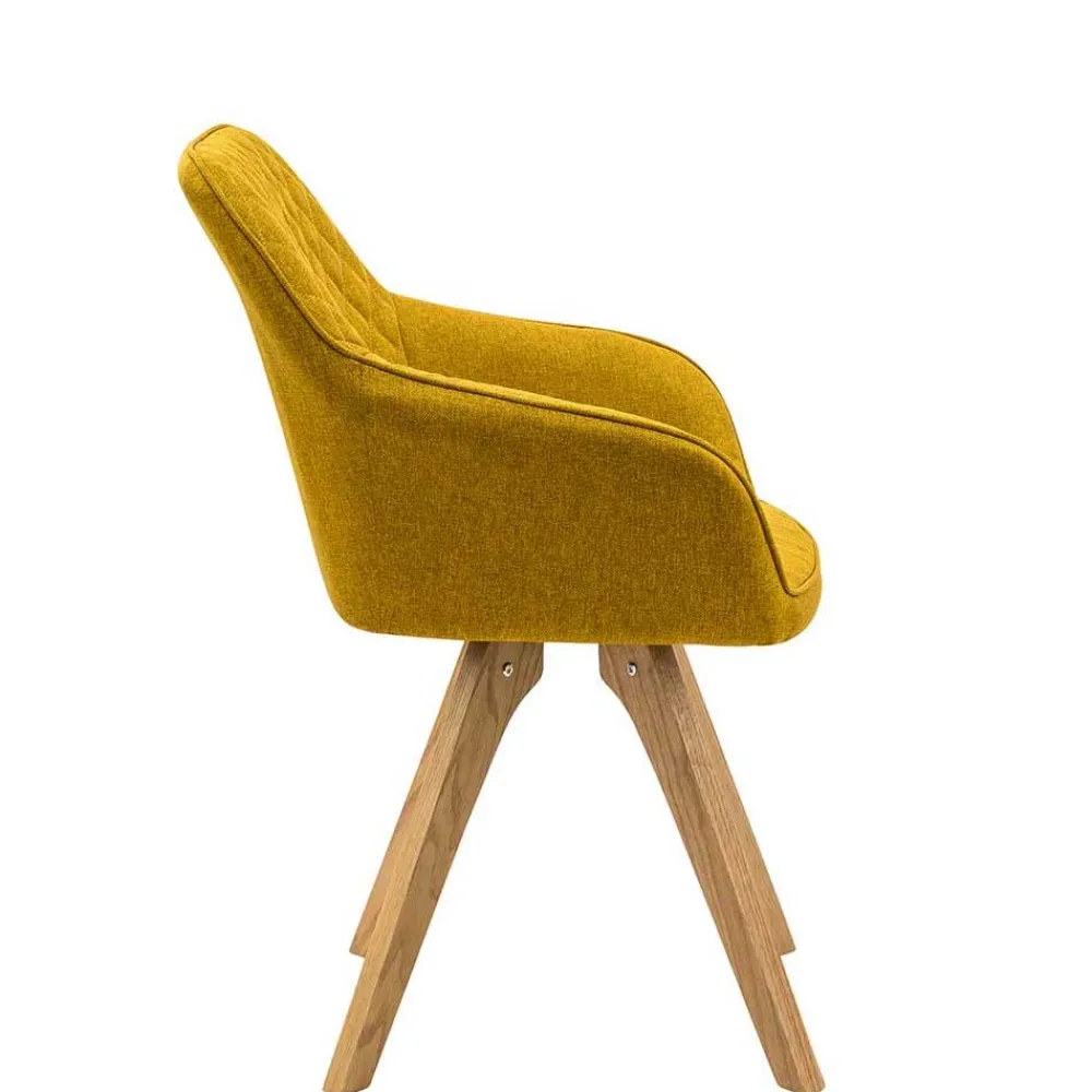 Die harmonische Verbindung aus dezentem Grau, sonnigem Gelb und natürlicher Eiche macht „Mint“ zu einem echten Blickfang. Die graue Tischplatte wirkt elegant und modern, während die gelben Webstoffbezüge der Stühle freundliche Akzente setzen. Das massive Eichenholz der Gestelle bringt eine warme, natürliche Note ins Spiel – perfekt abgestimmt auf den skandinavischen Stil.