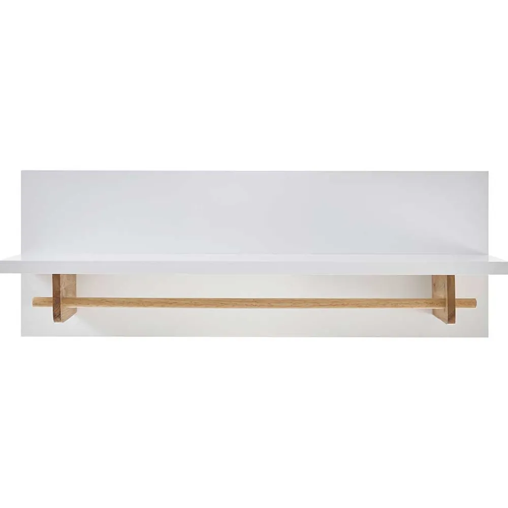 Mit einer Breite von 97 cm, einer Höhe von 35 cm und einer Tiefe von 32 cm bietet die Garderobe „Catia“ ausreichend Platz für Jacken, Mäntel und Accessoires, ohne viel Raum in Anspruch zu nehmen. Die harmonische Farbkombination aus Weiß und Naturholz fügt sich nahtlos in jeden Einrichtungsstil ein. Die durchgehende weiße Rückwand sorgt für zusätzliche Stabilität und eine einheitliche Optik. Die Kleiderstange ist geschickt unterhalb der praktischen Hutablage angeordnet, wodurch zusätzlicher Stauraum geschaffen wird, ohne den Raum zu überladen. Zudem ist die Garderobe zur platzsparenden Wandmontage geeignet und sorgt so für eine optimale Raumausnutzung.
