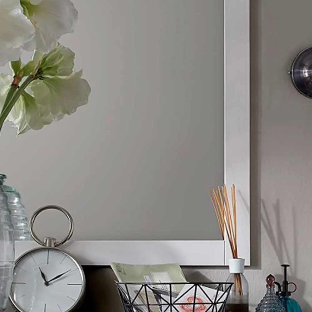 - Attraktiver Wandspiegel in Weiß mit Absetzungen in Grau