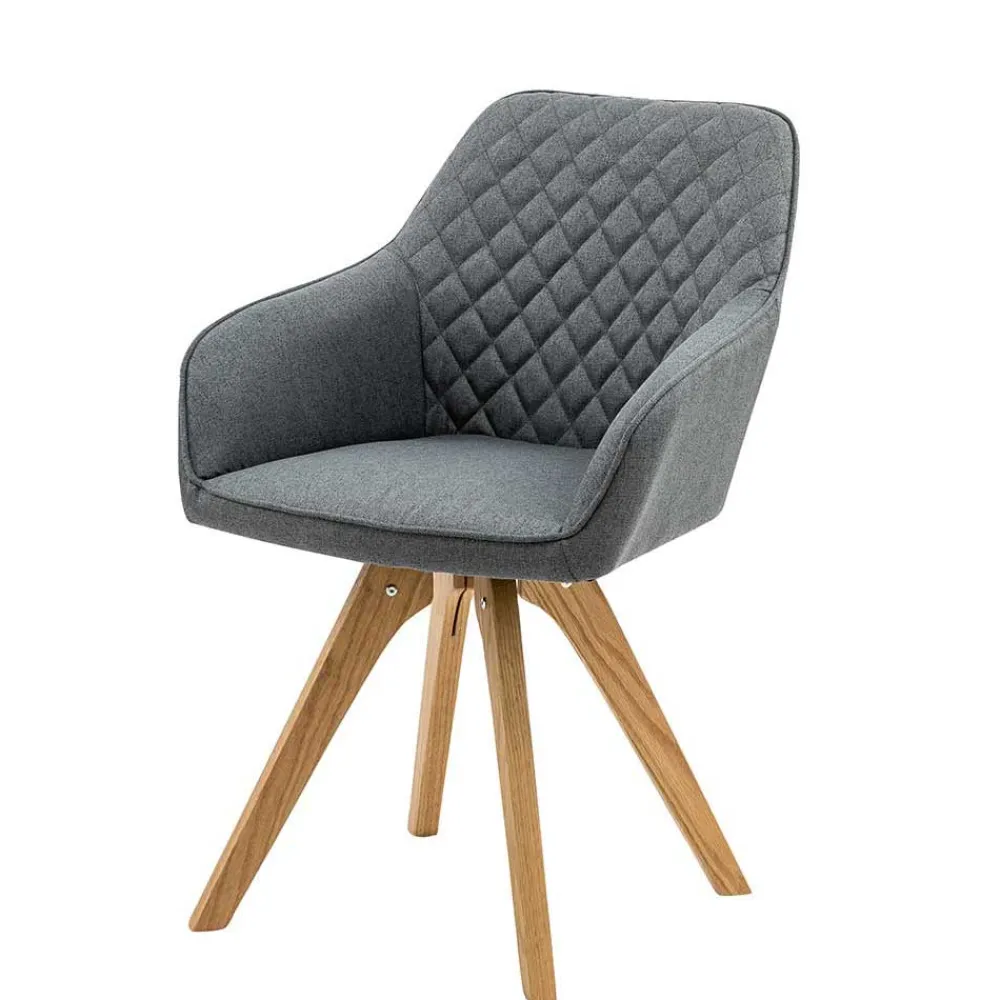 Die Stühle sind mit einem grauem strapazierfähigen Webstoff aus 100 % Polyester bezogen. Polyester bietet klare Vorteile: Es ist besonders robust, farbecht, reißfest und formstabil. Die weiche Haptik des Stoffes sorgt zusätzlich für angenehmen Sitzkomfort.