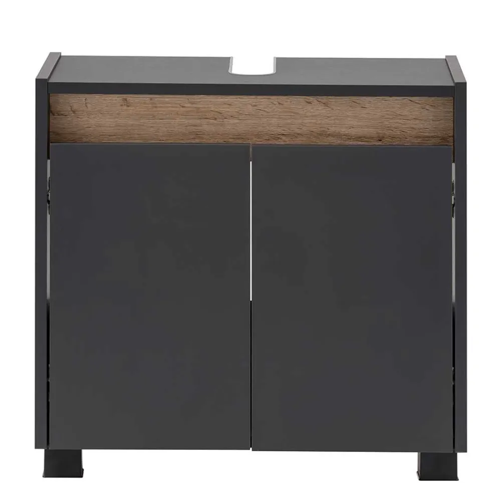 - Zeitgemäßer Unterbeckenschrank in Anthrazit und Wildeichefarben