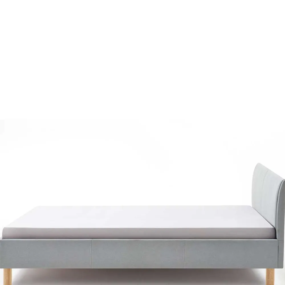 - Dezentes Polsterbett in Hellblau und Eichefarben