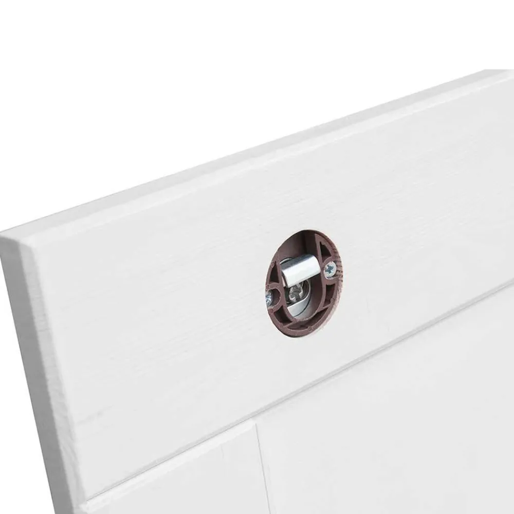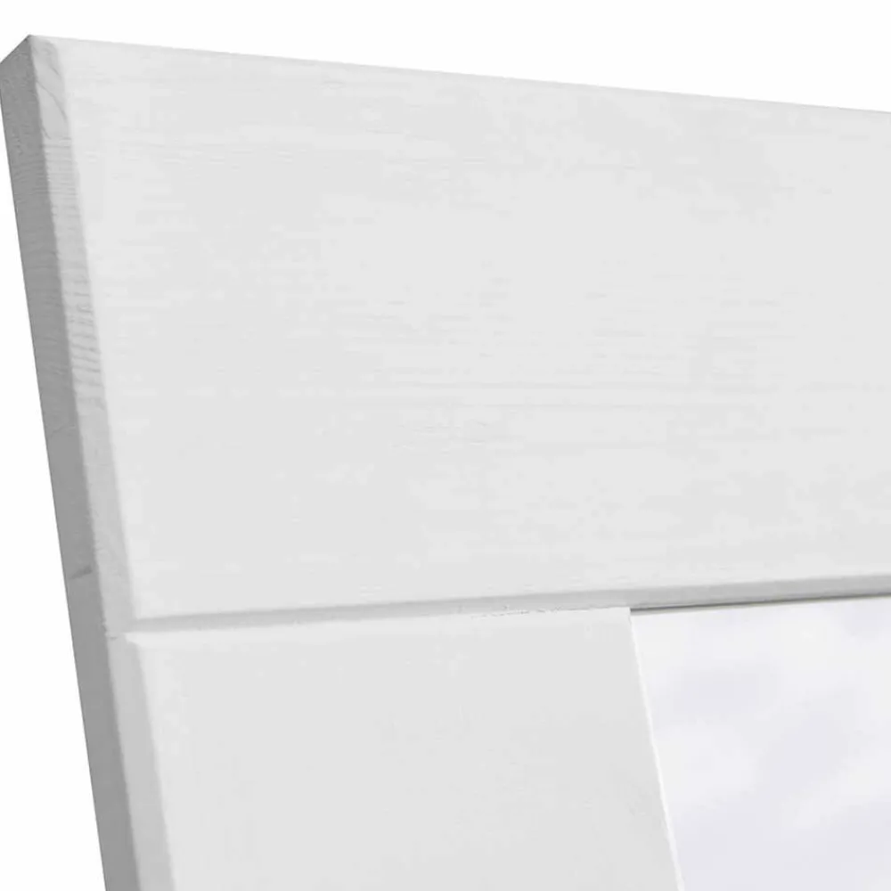 Die weiße Lackierung auf Wasserbasis mit einer Deckkraft von 85 % in RAL 9010 verleiht dem Spiegel einen frischen, klaren Look, ohne die natürliche Struktur des Holzes vollständig zu verdecken. Das Ergebnis ist eine Oberfläche, die leicht zu reinigen, widerstandsfähig und gleichzeitig umweltfreundlich ist – perfekt für ein gesundes Wohnklima.