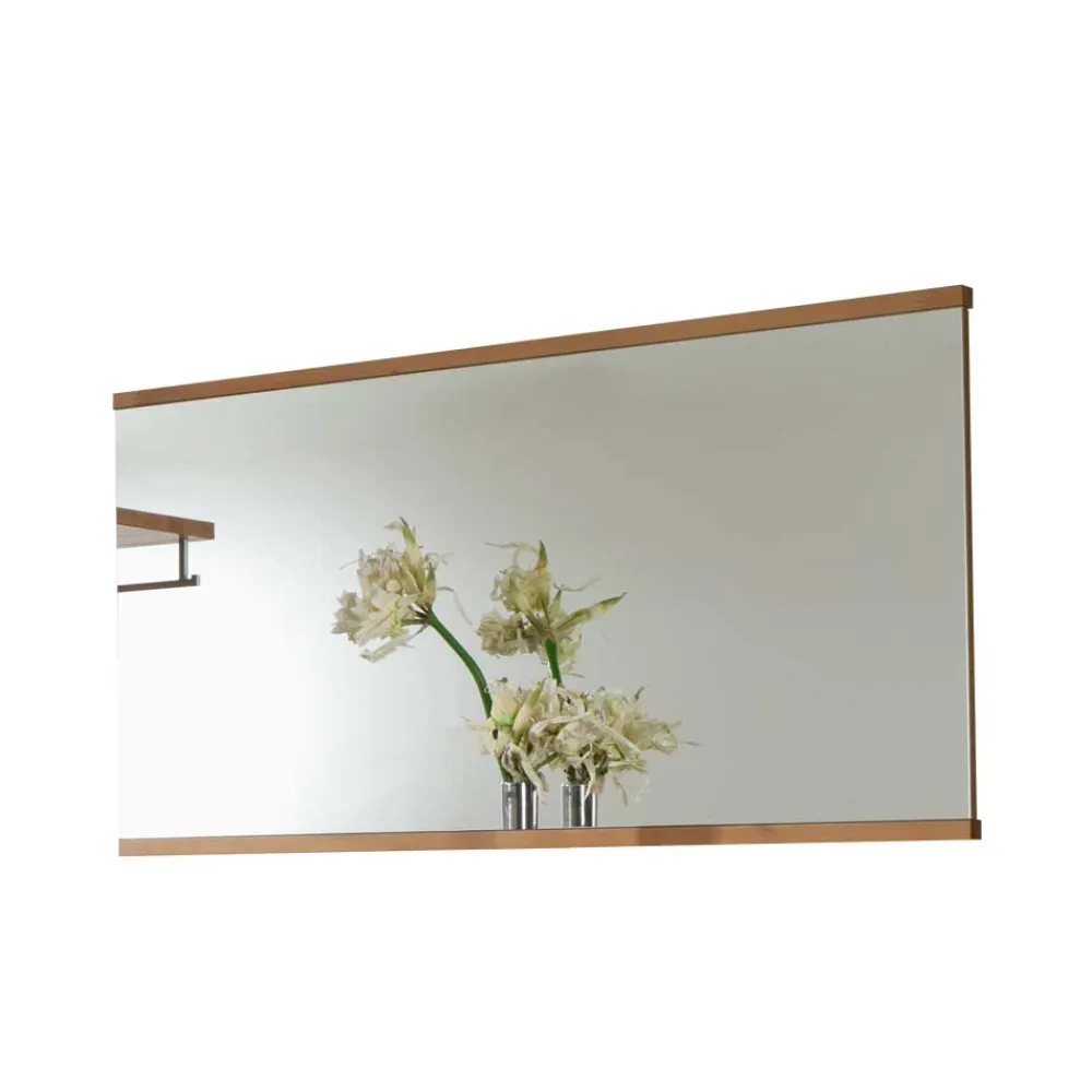 Mittig platzierte Spiegelfläche und sichtbare Holzleisten