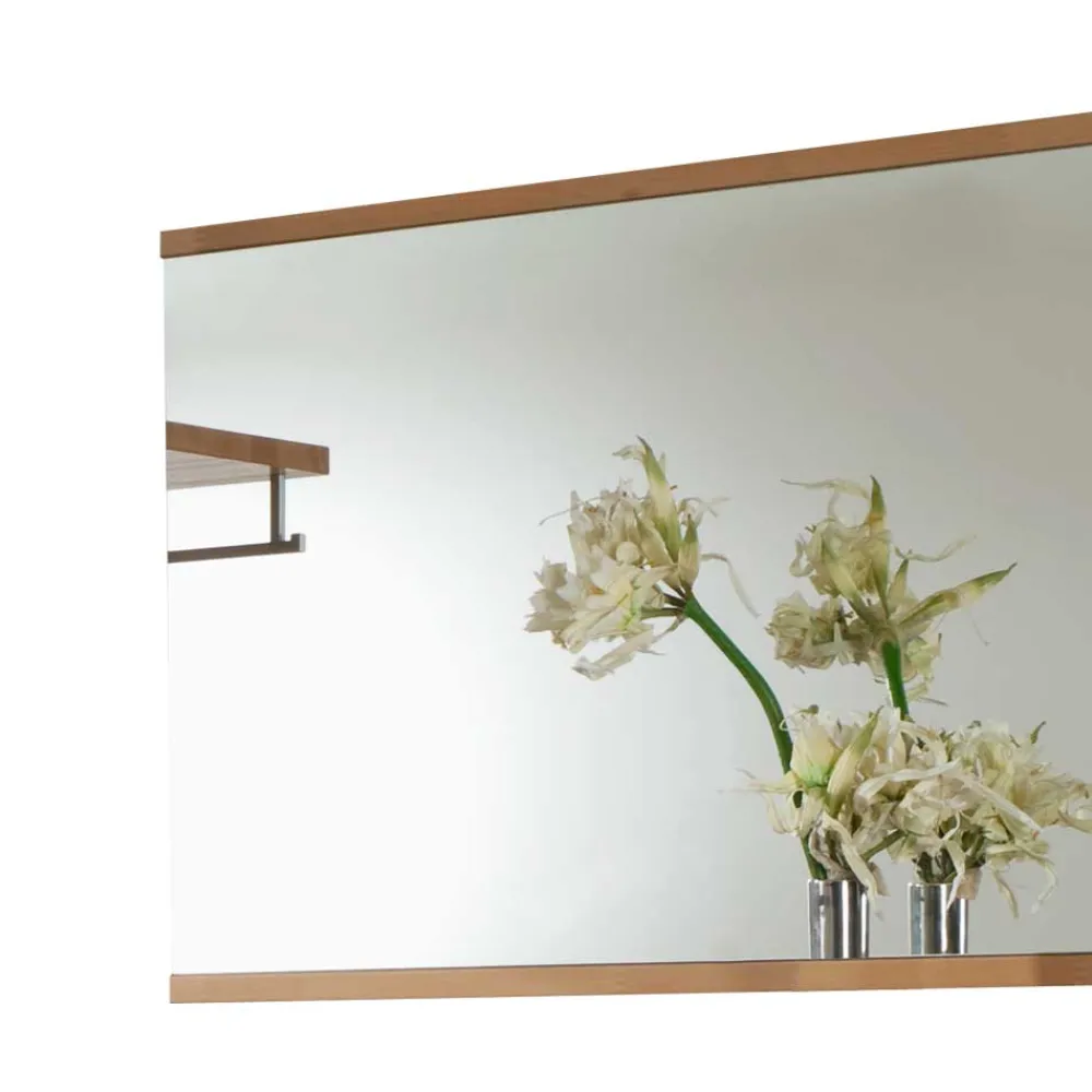 Der Garderobenspiegel „Wislama“ verfügt über eine mittig platzierte Spiegelfläche, die von oben und unten von sichtbaren Holzleisten umrahmt wird. Diese Gestaltungsdetails verleihen dem Spiegel einen einzigartigen Charakter und setzen stilvolle Akzente in Ihrem Zuhause.