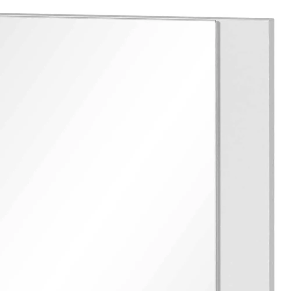 Hergestellt wird der Badspiegel aus hochwertigem Spiegelglas, das für eine brillante Spiegelfläche sorgt. Der Rahmen besteht aus robuster Spanplatte, die mit einer pflegeleichten Melaminbeschichtung in Weiß veredelt ist. Diese Oberfläche ist nicht nur widerstandsfähig gegenüber Feuchtigkeit, sondern lässt sich auch im Alltag besonders einfach reinigen. Kurz gesagt: Dieser Spiegel bleibt Ihnen lange schön erhalten, auch bei täglicher Nutzung im Badezimmer.