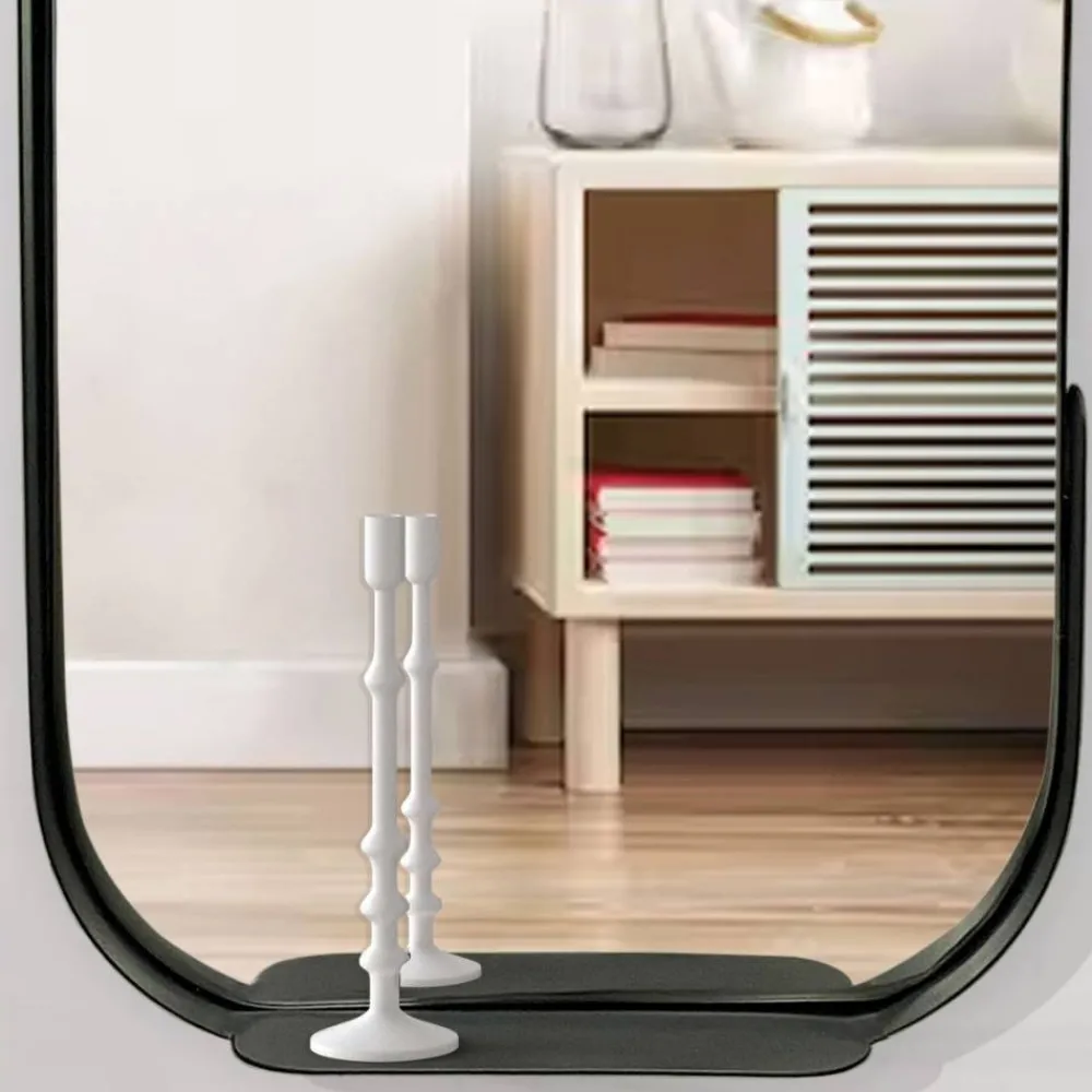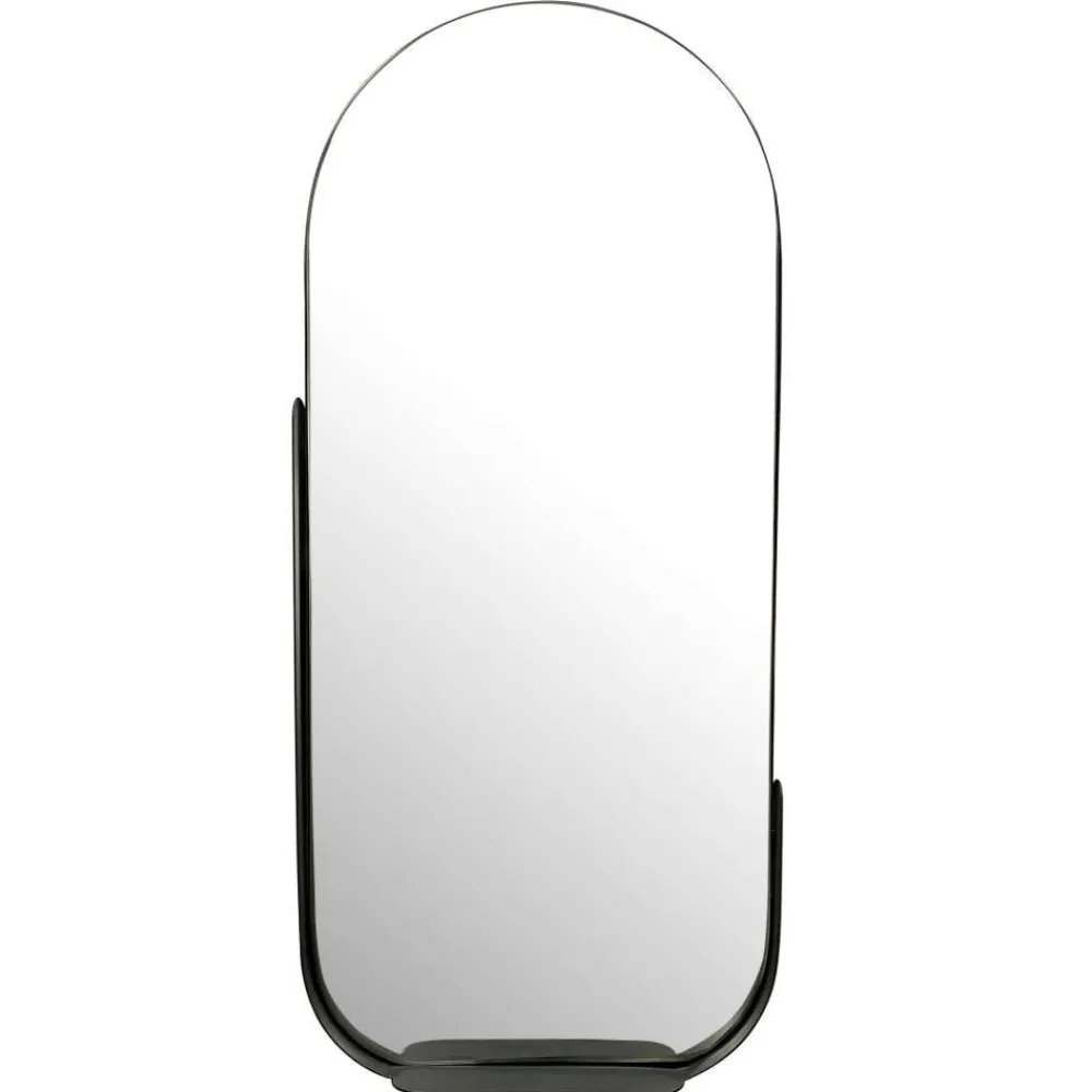 Der Spiegel „Dorcamido“ ist aus hochwertigem Spiegelglas gefertigt, das für klare Reflexionen sorgt. Sein Rahmen besteht aus langlebigem Eisen, das mit einer schwarzen Pulverbeschichtung veredelt wurde. Die unterschiedlich hohen Rahmenkanten verleihen dem Design eine besondere Dynamik, während die integrierte Ablage mit einer Fläche von 30 x 8 cm perfekt geeignet ist, um kleinere Deko-Objekte oder Alltagsgegenstände stilvoll zu präsentieren.