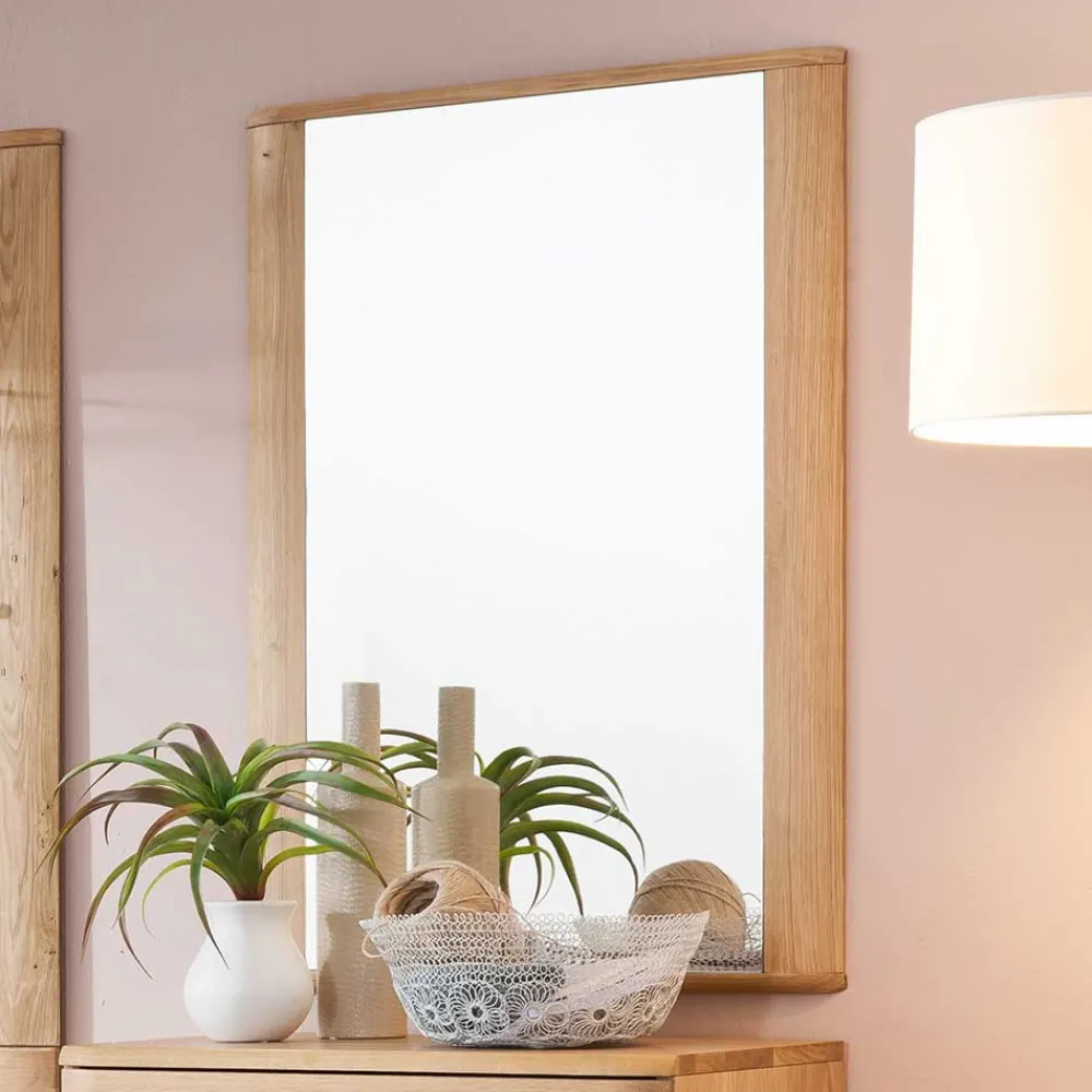 - Aus Eiche Massivholz, Spanplatte und Spiegelglas gefertigt