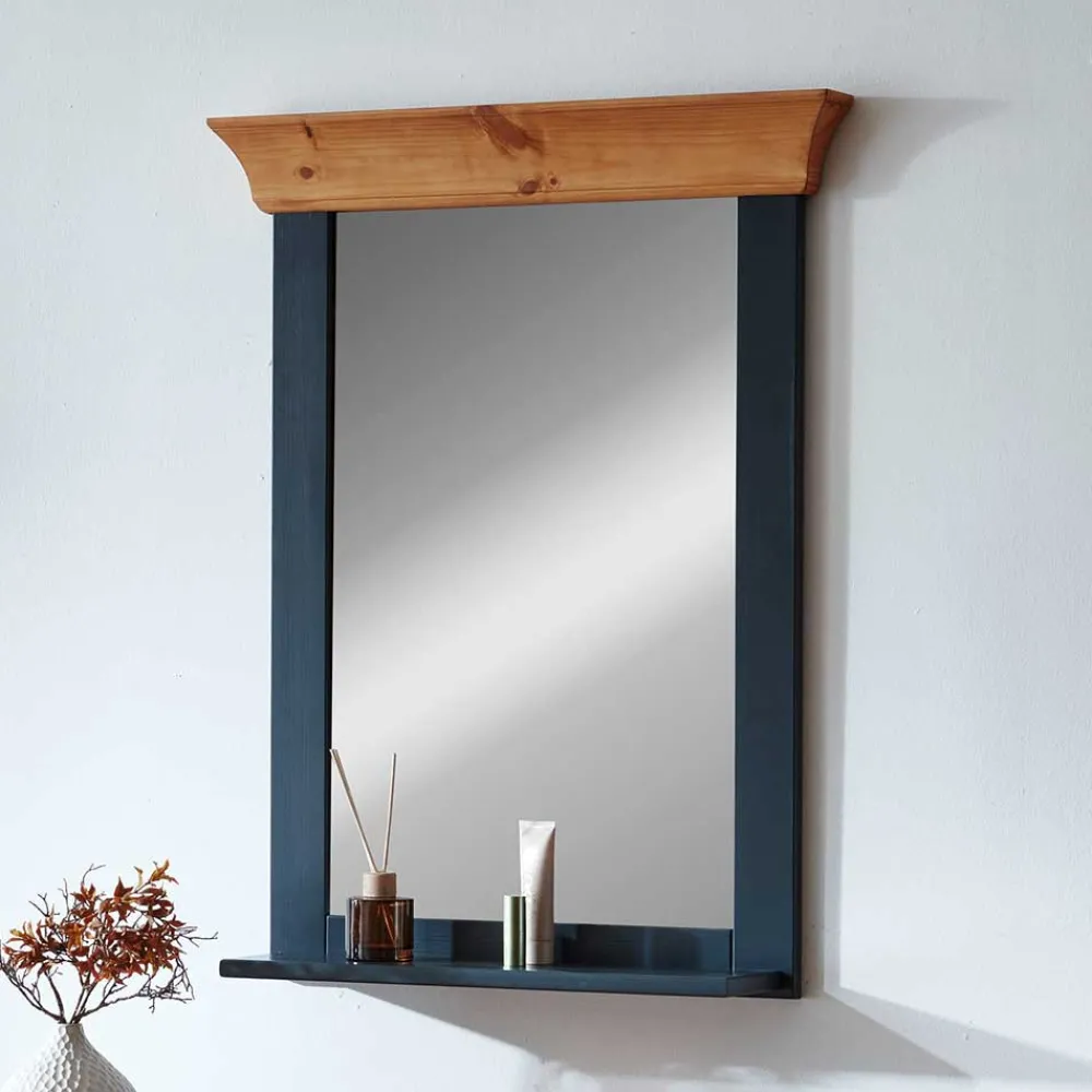 - Aus Spiegelglas und massivem Kiefernholz hergestellt