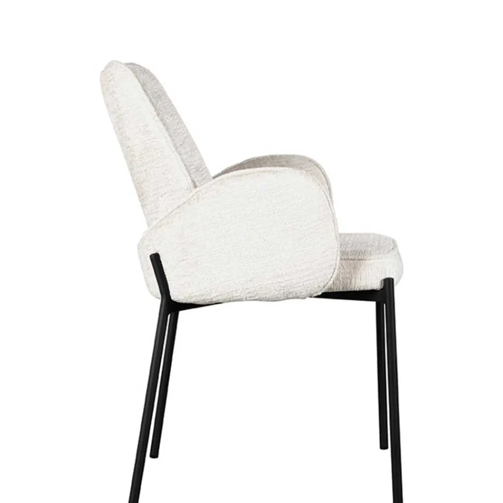 Mit dem Stuhl „Propanja“ holen Sie sich ein echtes Highlight in Ihren Essbereich. Die klaren Linien, das elegante Zusammenspiel aus cremeweißem Struktursamt und schwarzem Metallgestell sowie die feine, leicht nach hinten geneigte Rückenlehne machen ihn zu einem Designobjekt, das Ihre Einrichtung auf ein neues Niveau hebt. Dank der hohen, geraden Armlehnen und der harmonischen Formgebung genießen Sie nicht nur stilvolle Optik, sondern auch ein Sitzgefühl, das pure Entspannung verspricht.