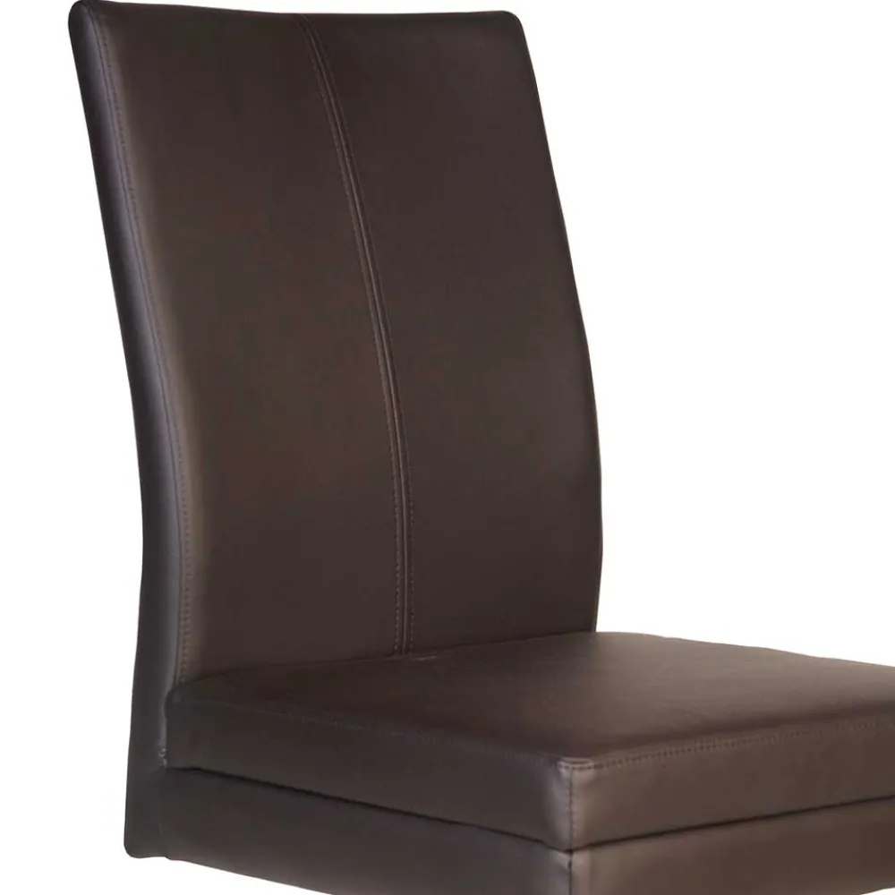 Der Kunstlederbezug des „Imbizia“ besteht zu 100 % aus hochwertigem Polyurethan und überzeugt nicht nur durch seine edle Optik in Dunkelbraun, sondern auch durch seine Pflegeleichtigkeit. Verschüttete Flüssigkeiten und Flecken lassen sich im Handumdrehen entfernen – ein kurzer Wisch genügt, und der Stuhl erstrahlt wieder wie neu. Dieser Bezug ist strapazierfähig und bietet Ihnen viele Jahre Freude und leichte Pflege in einem.