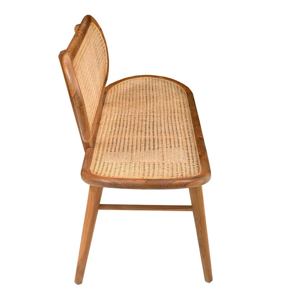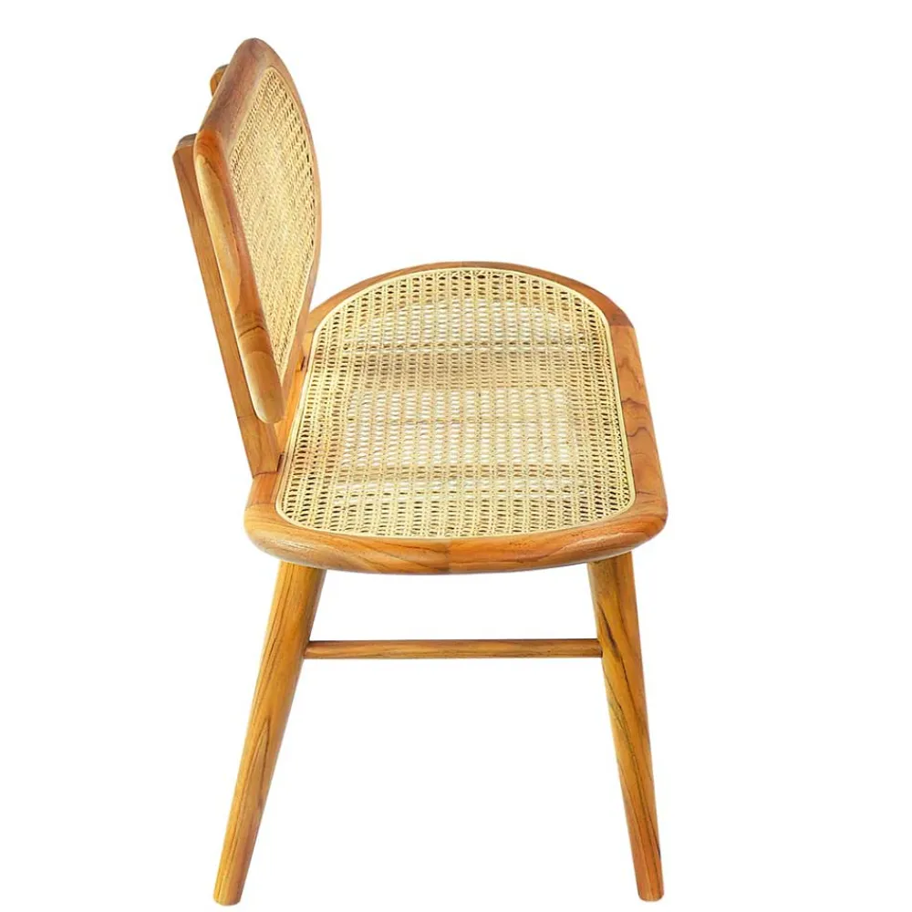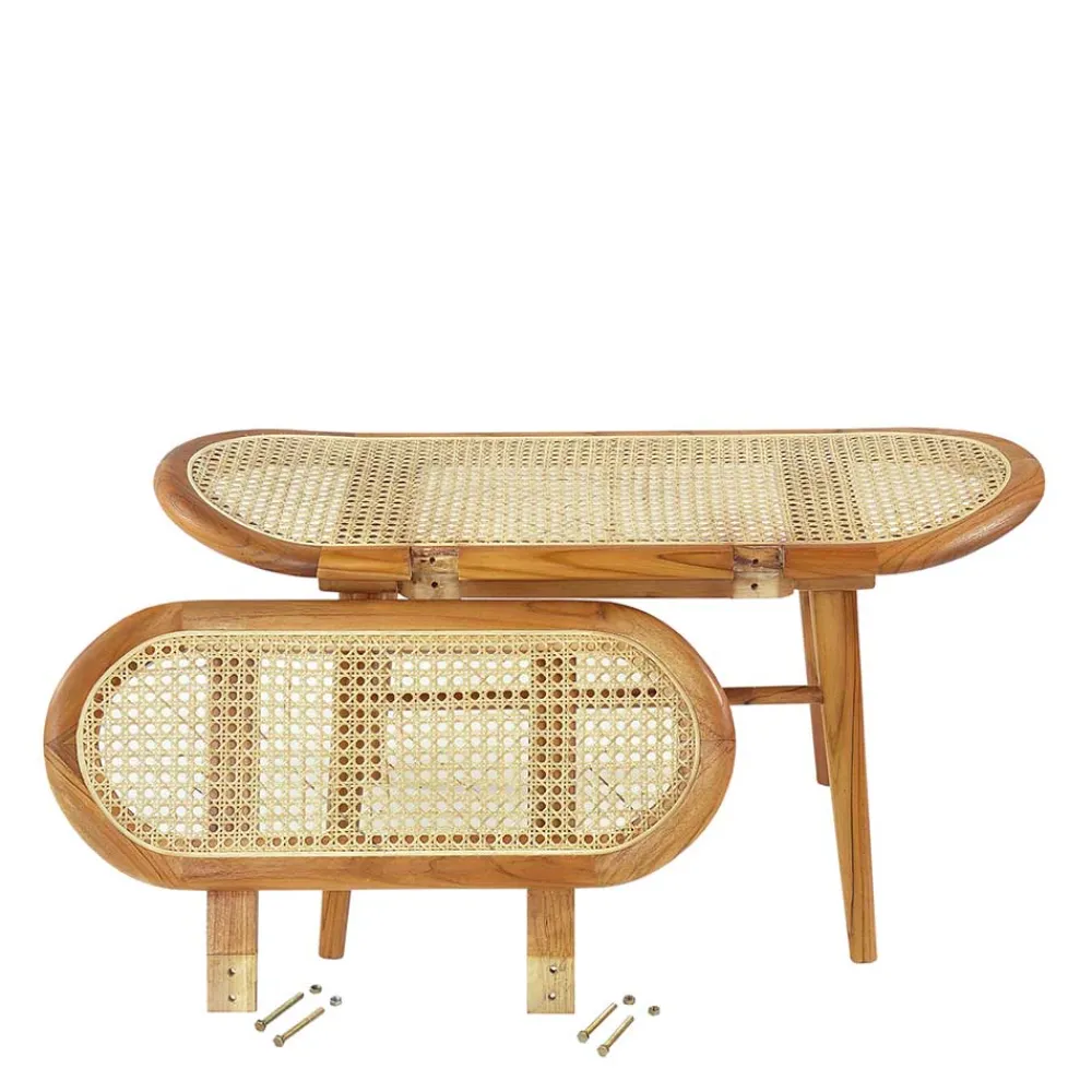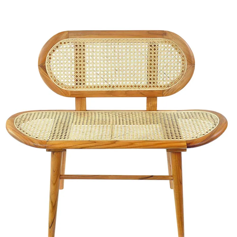 Gefertigt aus massivem Teakholz überzeugt die Bank nicht nur optisch, sondern auch durch ihre Langlebigkeit und Stabilität. Die hochwertige Verarbeitung zeigt sich in jedem Detail – vom fein geschwungenen Rahmen bis hin zur raffiniert gearbeiteten Sitzfläche. Diese ist ebenso wie die kurze Rückenlehne oval geformt und mit charmantem Wiener Geflecht aus natürlichem Rattan versehen. Das Geflecht sorgt nicht nur für eine optische Leichtigkeit, sondern auch für angenehmen Sitzkomfort. Die natürlichen Materialien machen „Feliana“ besonders pflegeleicht und widerstandsfähig – ideal für den täglichen Gebrauch.