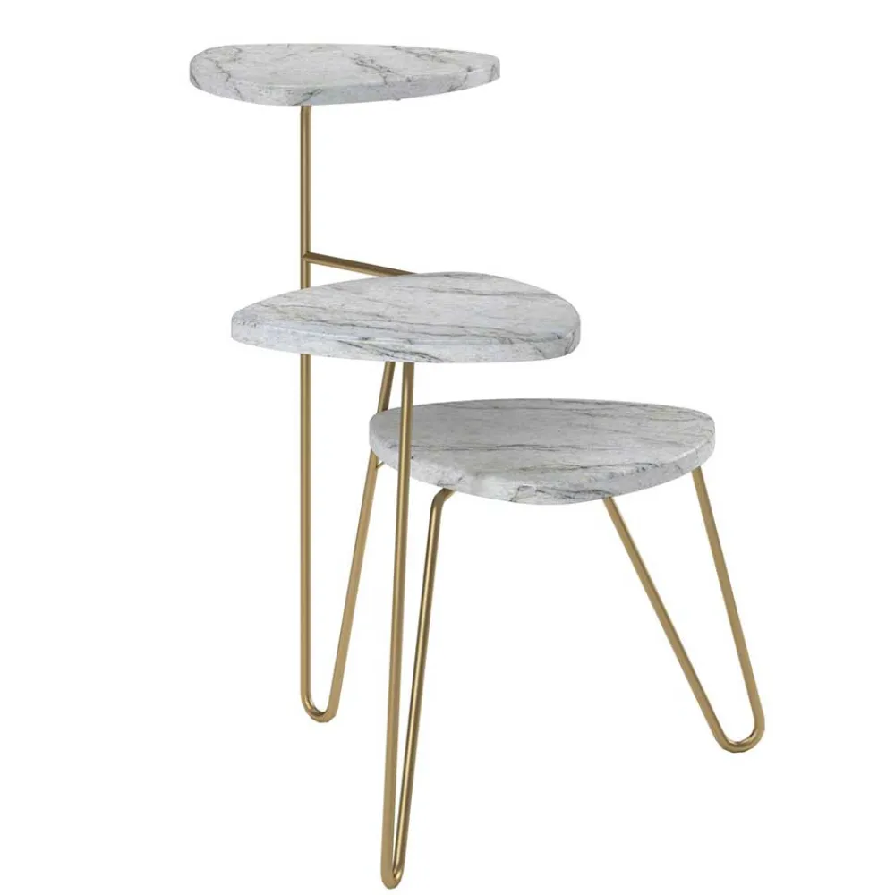 Das standfeste Metall-Dreibeingestell in Haarnadelform ist pflegeleicht beschichtet und gewährleistet eine lange Lebensdauer. Die Tischplatten sind jeweils mit einer maximalen Belastbarkeit von 1,8 kg ideal für die Präsentation Ihrer Lieblingsblumen oder anderer Dekorationen.