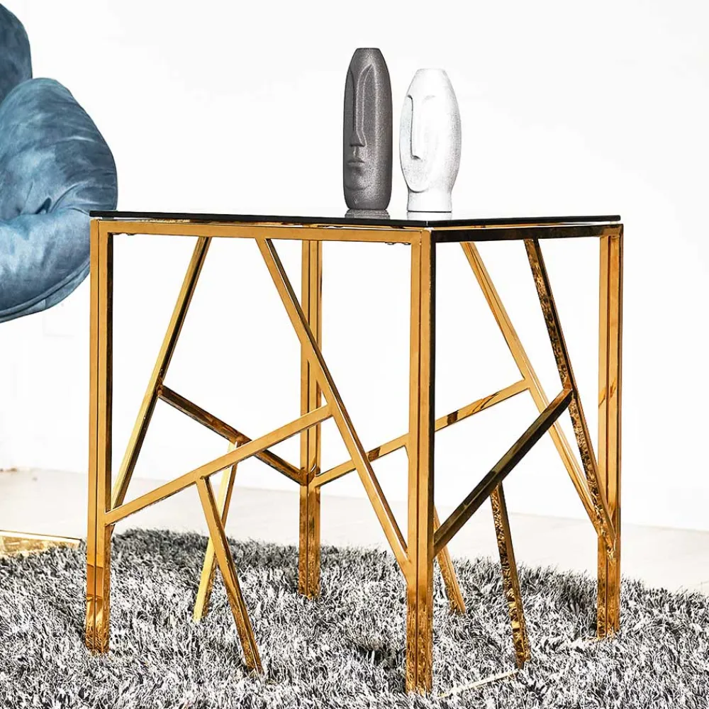 - Edler Couchtisch in Goldfarben und Grau transparent