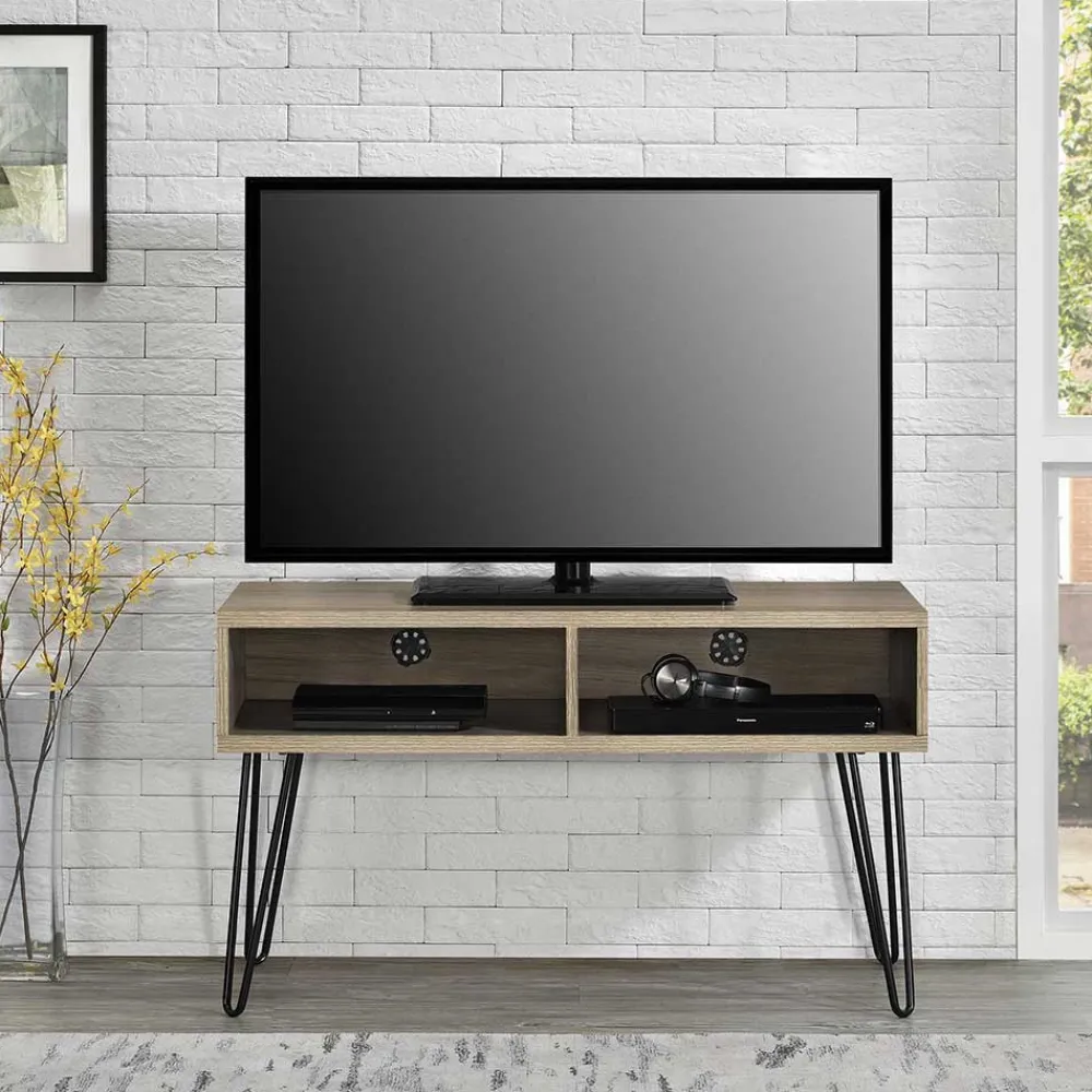 - Zwei offene Gerätefächer bieten Platz für Receiver oder Spielekonsole