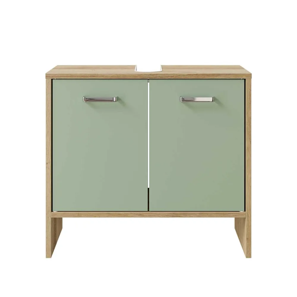 Der Unterbeckenschrank „Silevos“ vereint Funktionalität und Design in Ihrem Bad und bietet die ideale Ergänzung unter jedem Waschbecken. Die klare Linienführung und die harmonische Kombination aus Graugrün und Eiche Natur verleihen Ihrem Badezimmer einen zeitlos-eleganten Look. „Silevos“ wird in Deutschland gefertigt und garantiert durch seine Qualität und Verarbeitung eine langanhaltende Freude im täglichen Gebrauch.