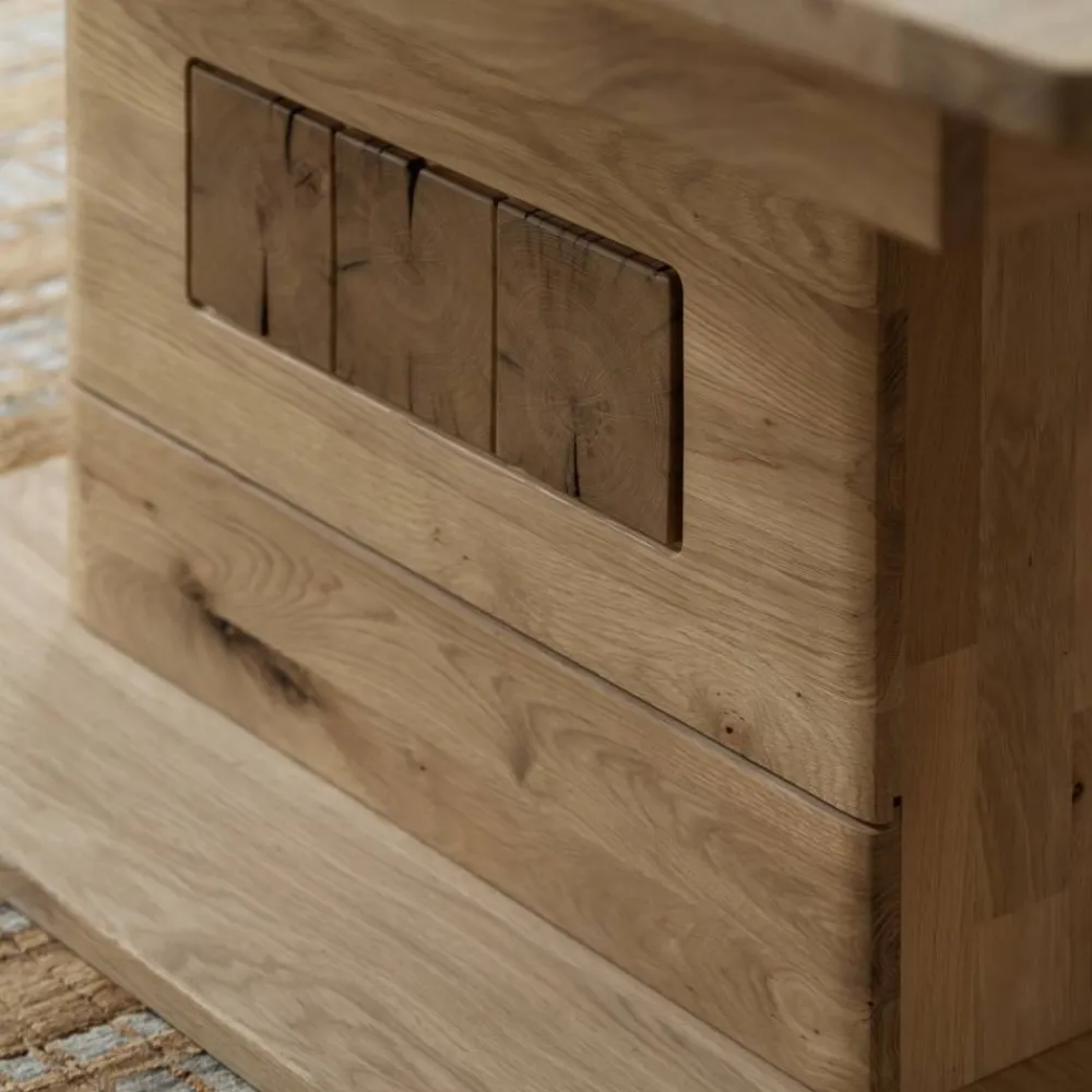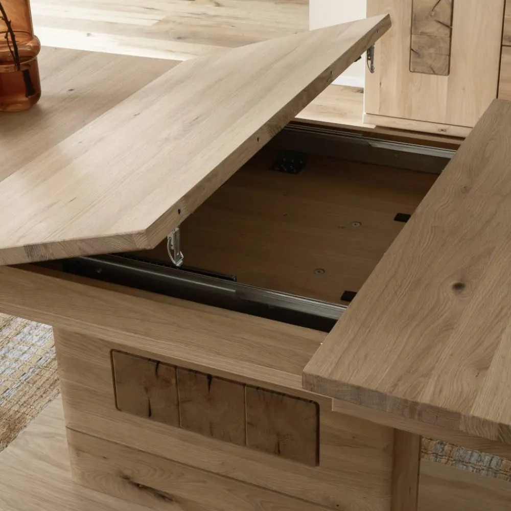 - Aus massivem Ast- und Balkeneiche Holz sowie Holzwerkstoff hergestellt