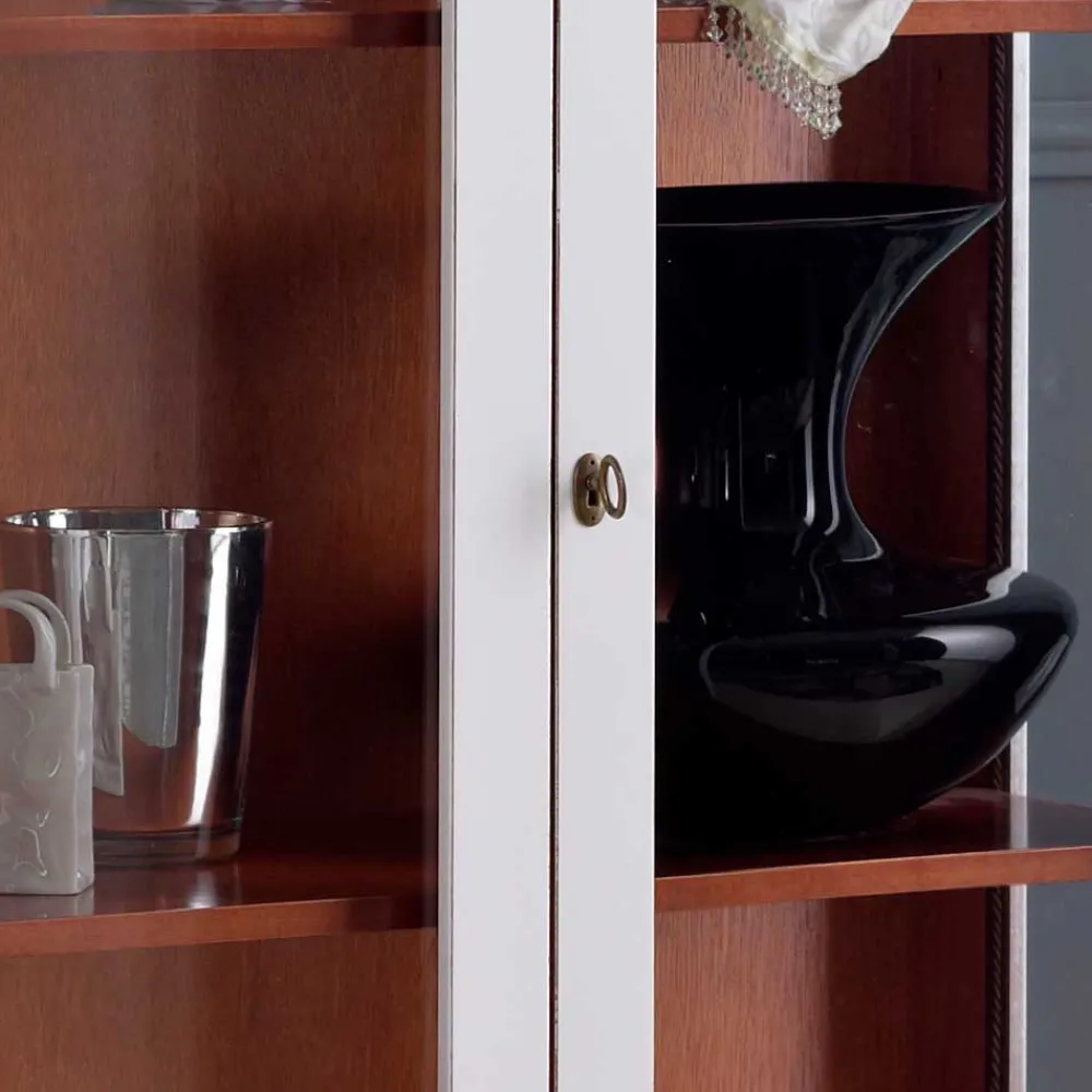 - Edle Vitrine in Weiß und Nussbaumfarben