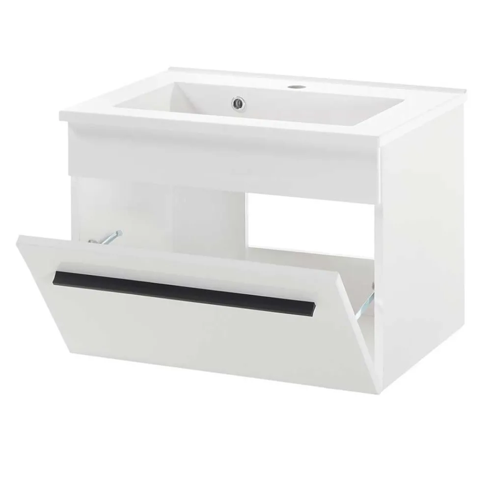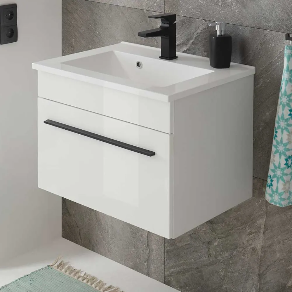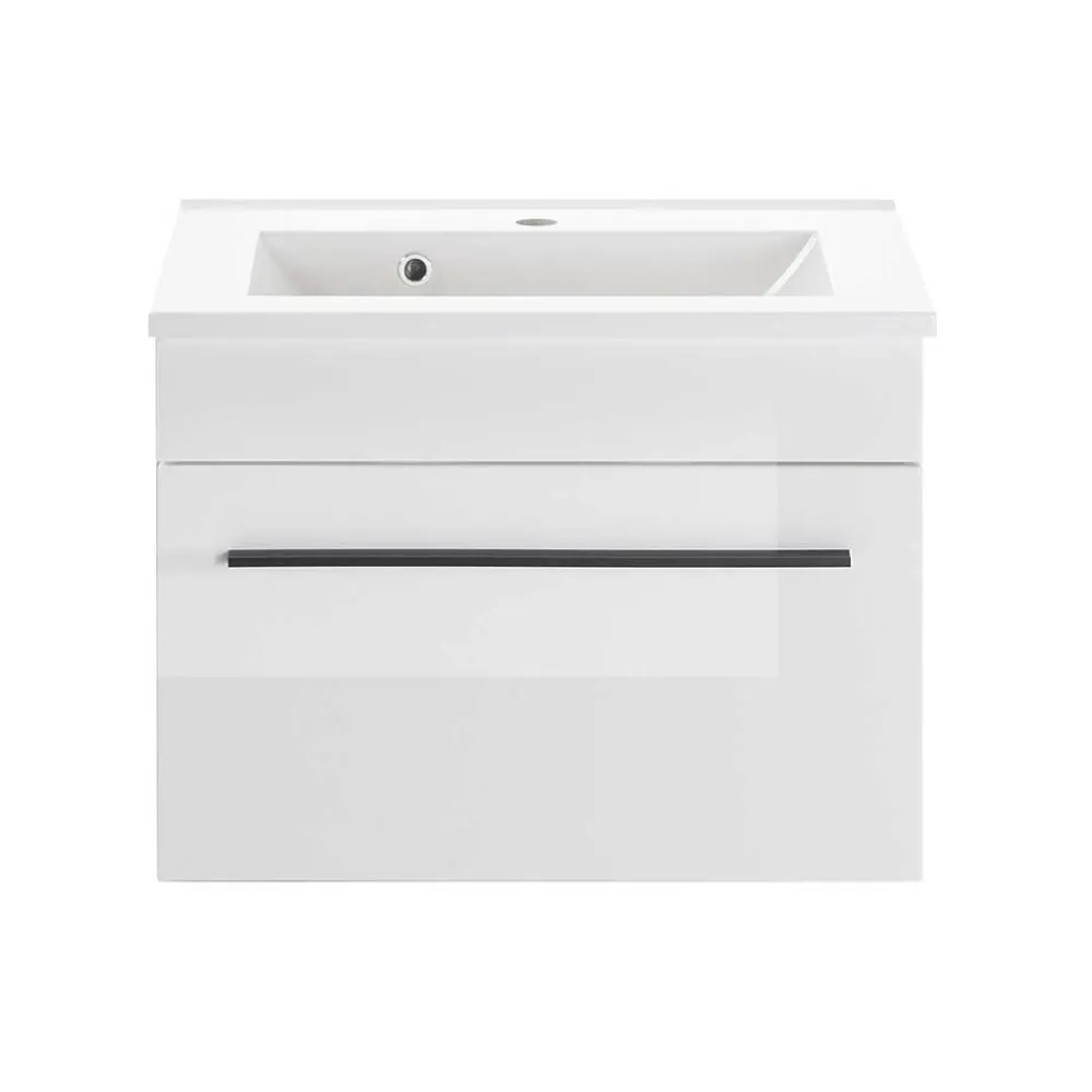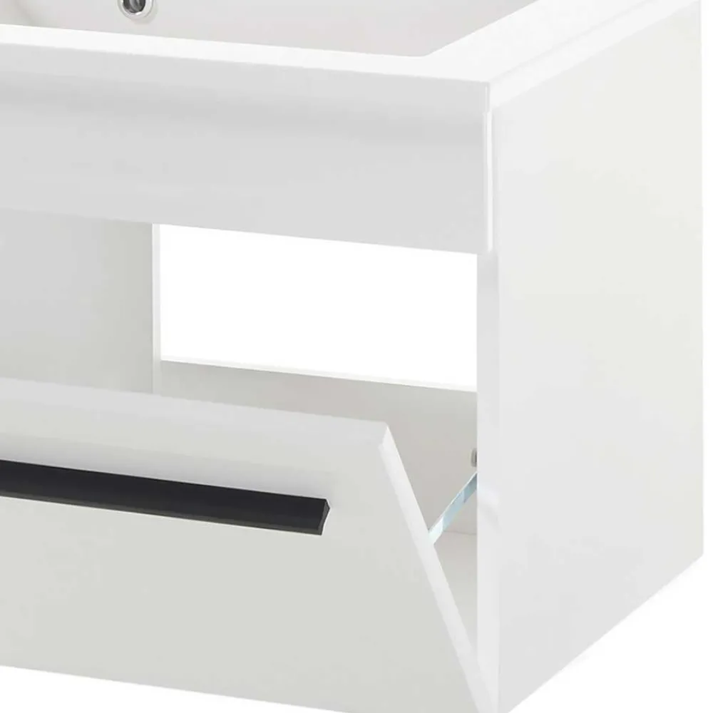 - Front hochglänzend weiß foliert und tiefgezogen, Korpus melaminbeschichtet