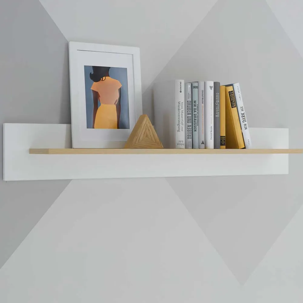 Mit einer Breite von 107 cm, einer Höhe von 17 cm und einer Tiefe von 19 cm fügt sich dieses Wandboard nahtlos in jeden Wohnraum ein. Die geradlinige, rechteckige Form wird durch eine beidseitig eingekürzte Ablage ergänzt, die perfekt ist, um Lieblingsbücher, Deko-Objekte oder Erinnerungsstücke stilvoll zu präsentieren.