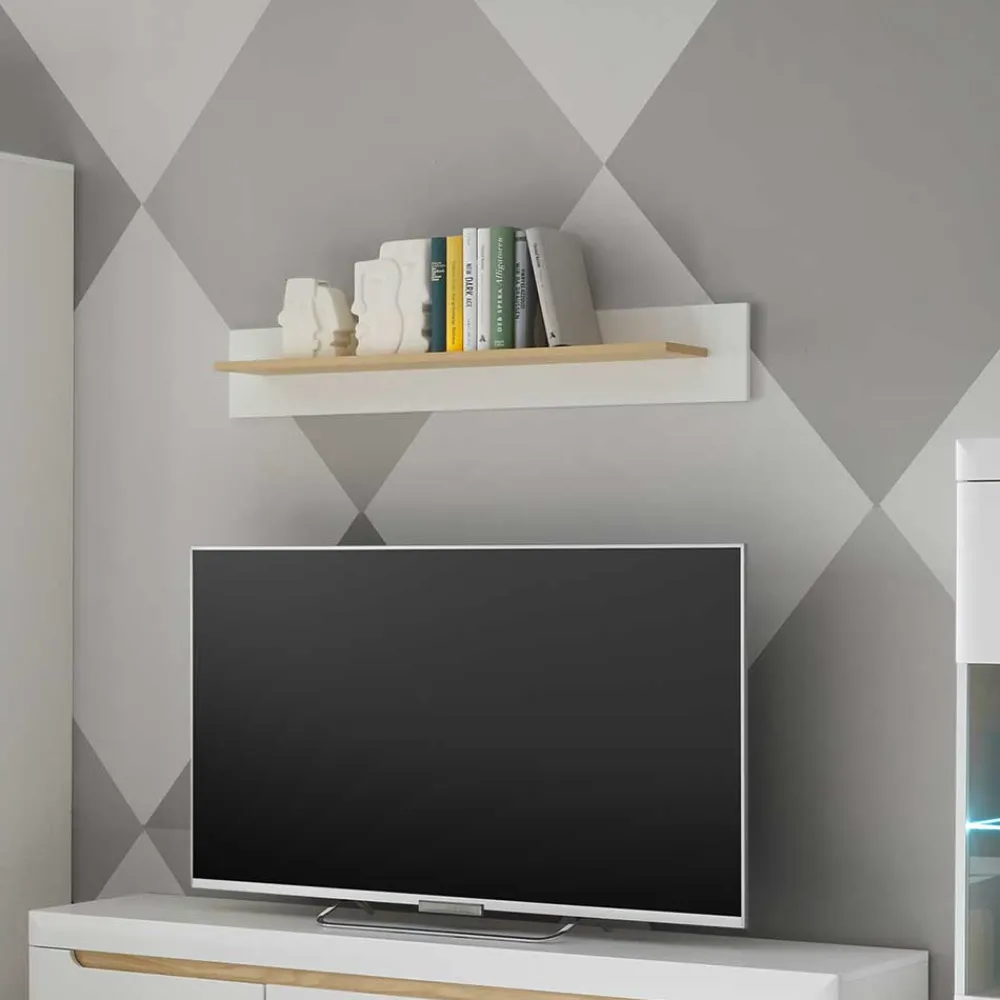 Hergestellt aus robustem Holzwerkstoff, bietet das Wandboard „Ginko“ nicht nur Stabilität und Langlebigkeit, sondern ist auch pflegeleicht. Die weiß folierte Oberfläche harmoniert perfekt mit der Ablage in Holzoptik-Eiche, die einen ansprechenden Kontrast bildet und Wärme in jeden Raum bringt. Holzwerkstoff ist bekannt für seine Beständigkeit und leichte Pflege, was es zum idealen Material für das moderne Zuhause macht.