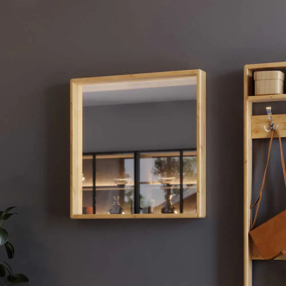Gefertigt aus massivem Kiefernholz und hochwertigem Spiegelglas, verspricht der Wandspiegel „Etvina“ eine hervorragende Qualität, die dem täglichen Gebrauch problemlos standhält. Massivholz zeichnet sich durch seine Robustheit und Stabilität aus und ist eine nachhaltige Wahl, die Ihnen lange erhalten bleibt. Das spiegelnde Glas sorgt für klare Reflexionen und erweitert optisch jeden Raum – ideal, um Ihrem Zuhause das gewisse Etwas zu verleihen.