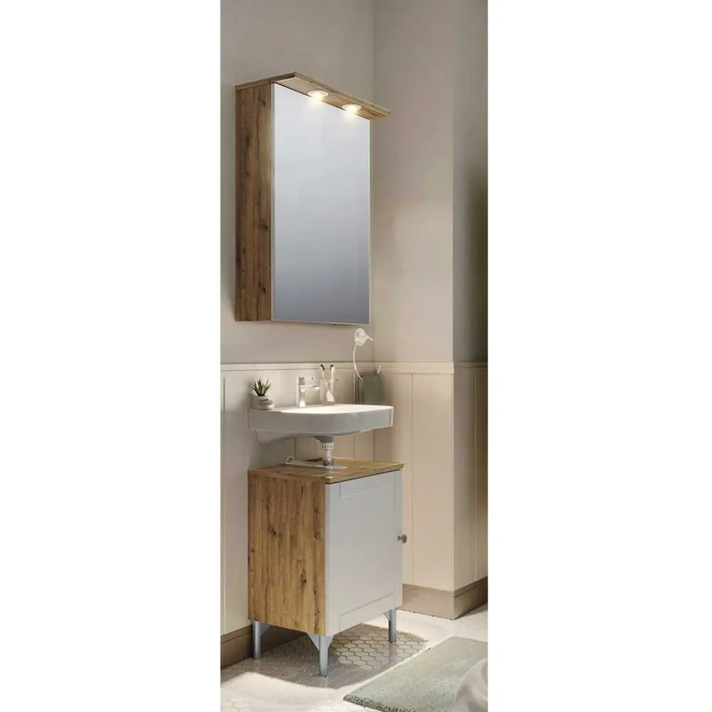- Modisches Badmöbel Set in Weiß und Wildeichefarben