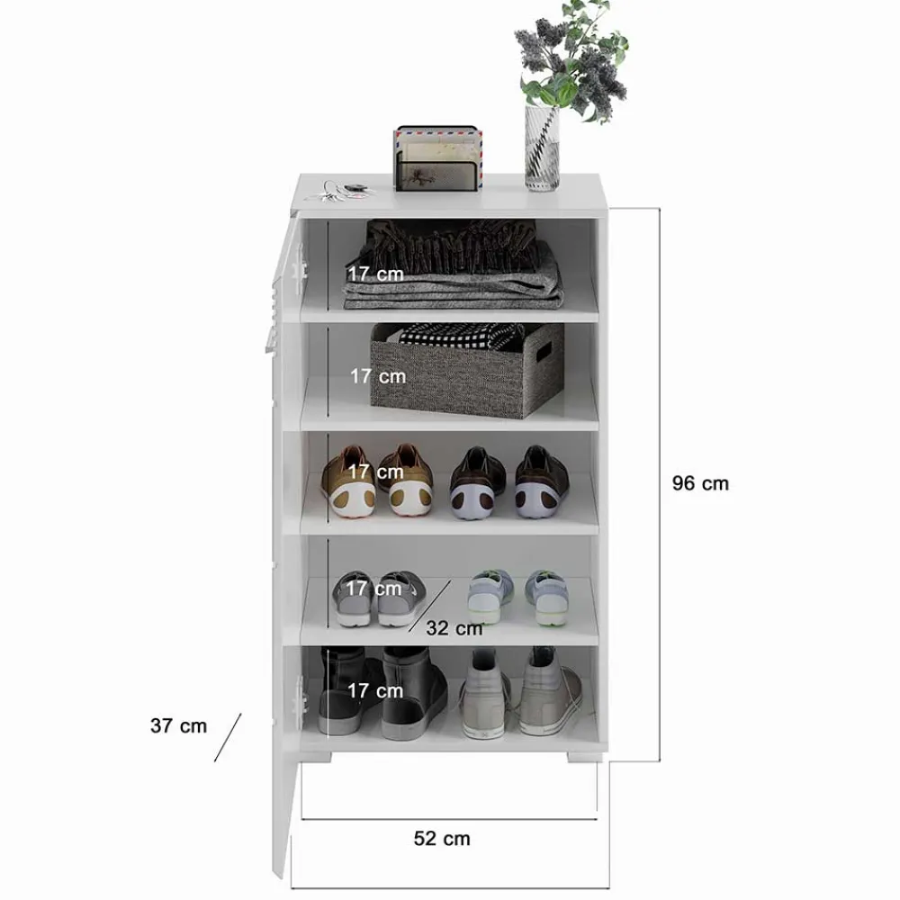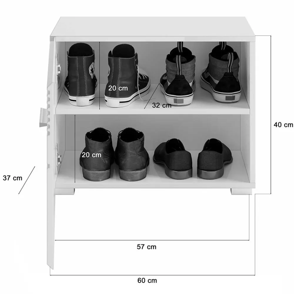- Eine Tür, innen vier verstellbare Einlegeböden, Platz für ca. zehn Paar Schuhe, je nach Größe